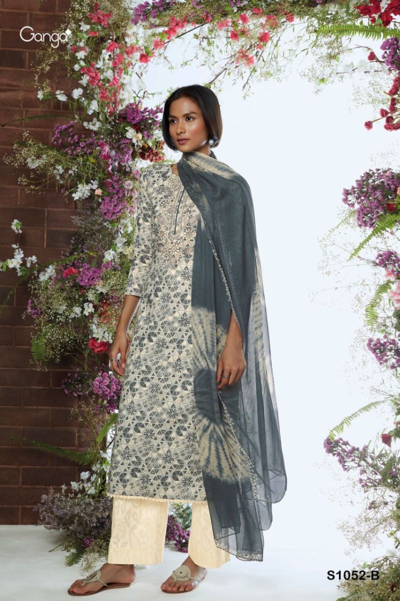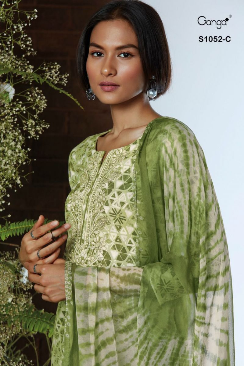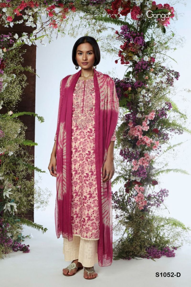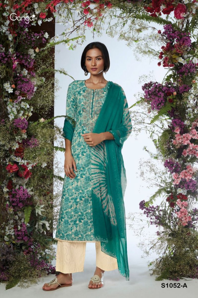 Kasumi S1052 By Ganga Designer With Orinted And Embroidery Work Cotton Suits Are Available At Wholesale Price