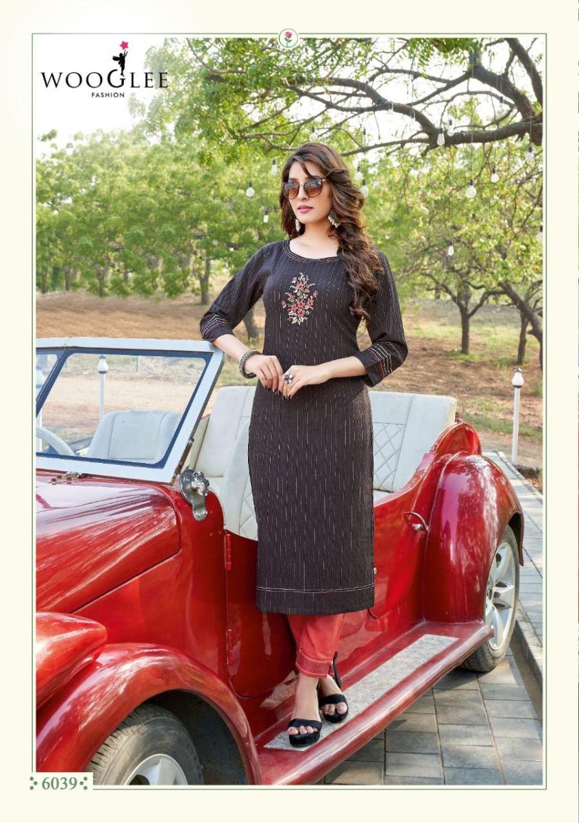 Kesar Vol-5 Kurti By Wooglee Designer With Work Naylon Viscose Kurti With Pant Are Available At Wholesale Price