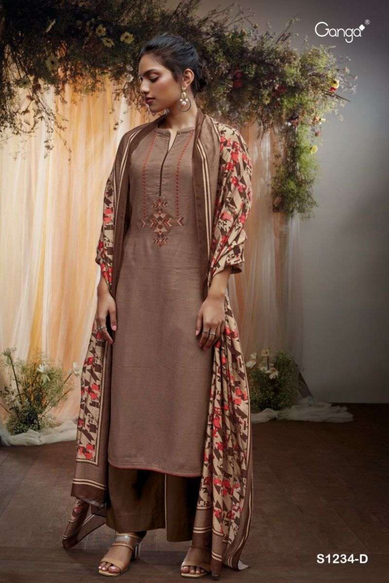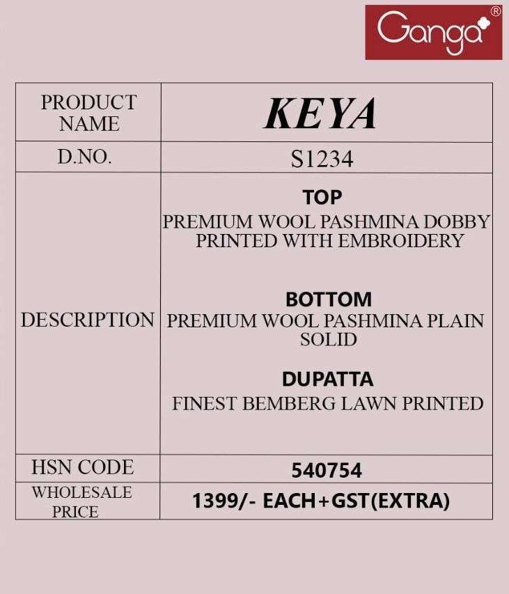 KEYA 1234 SERIES BY GANGA DESIGNER WITH WORK PASHMINA DOBBY SUITS ARE AVAILABLE AT WHOLESALE PRICE