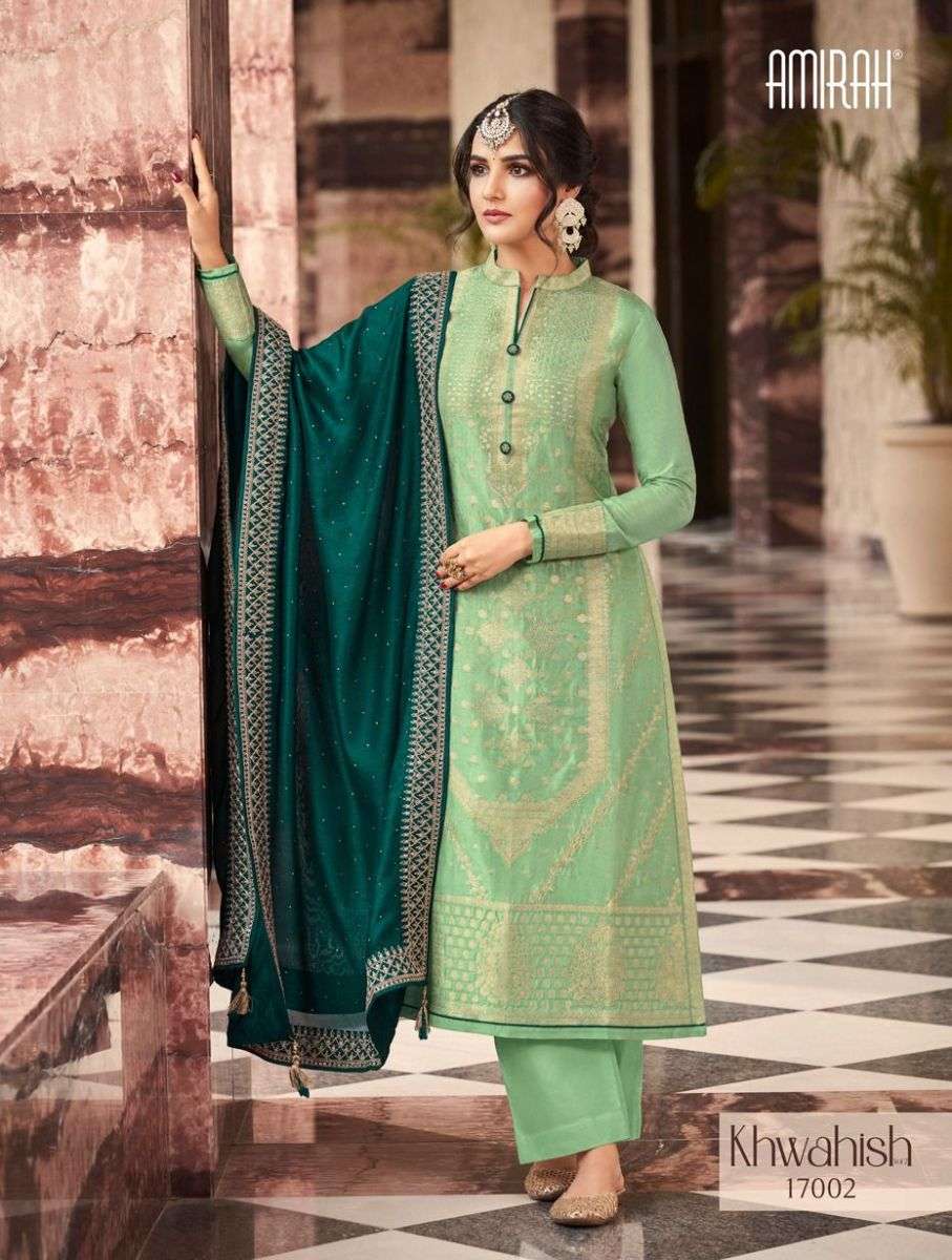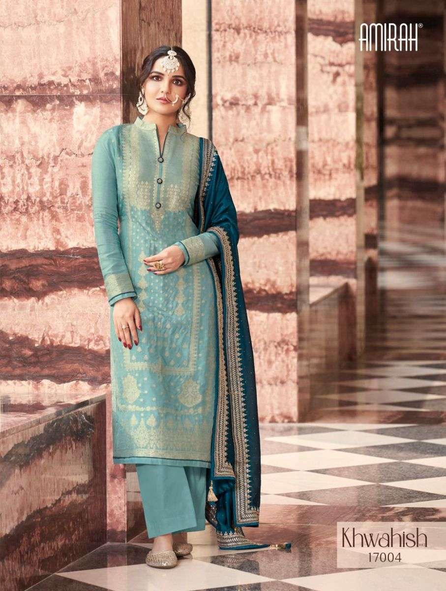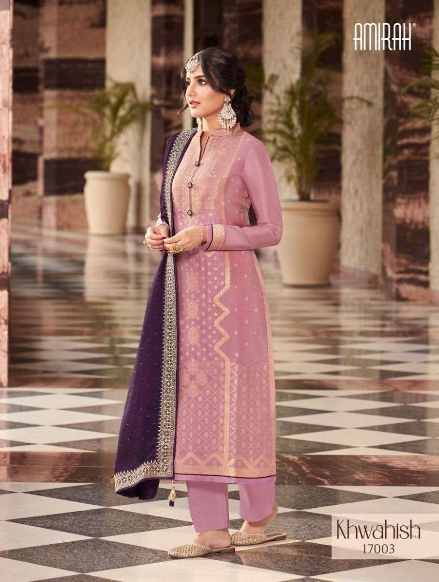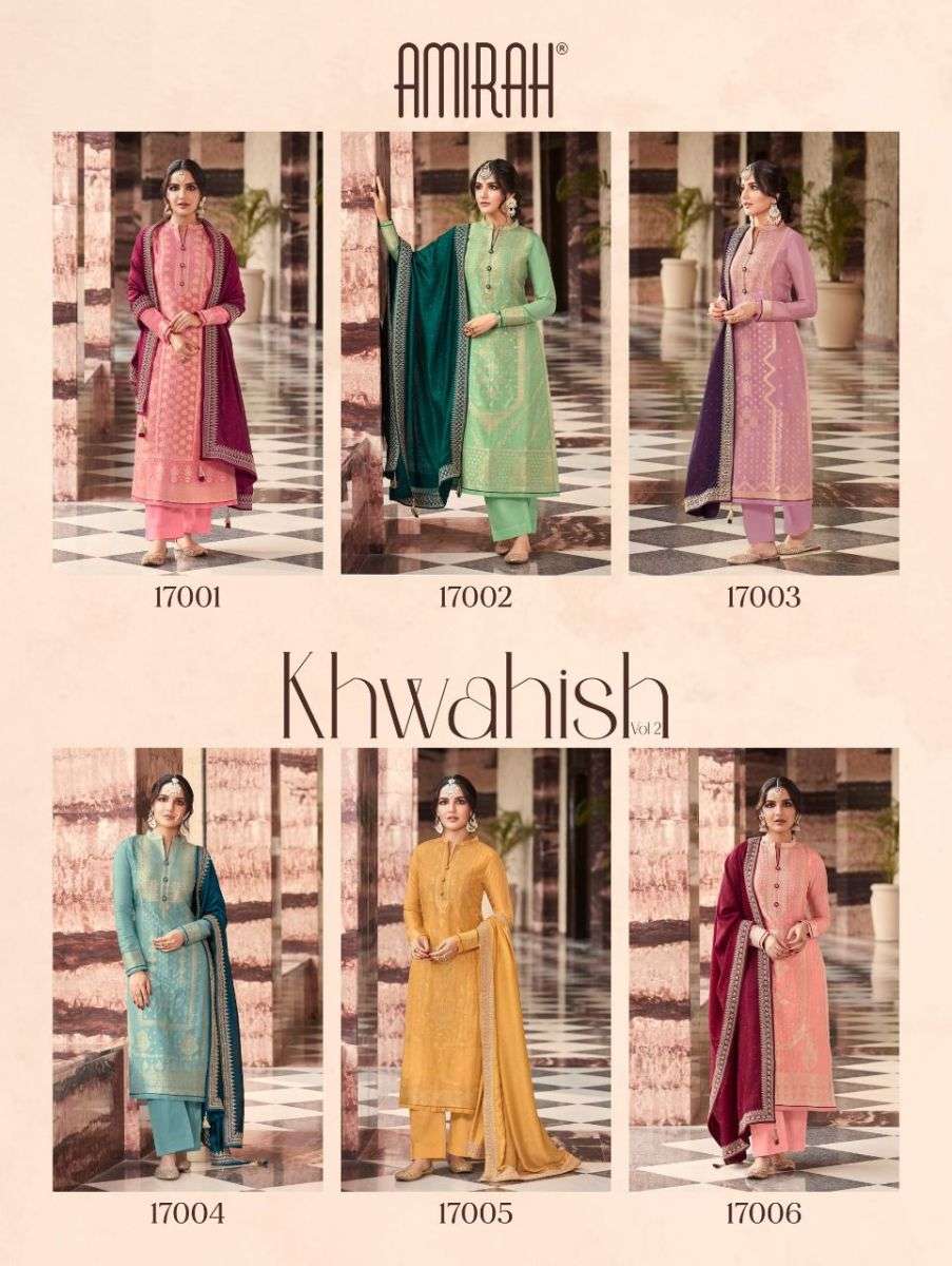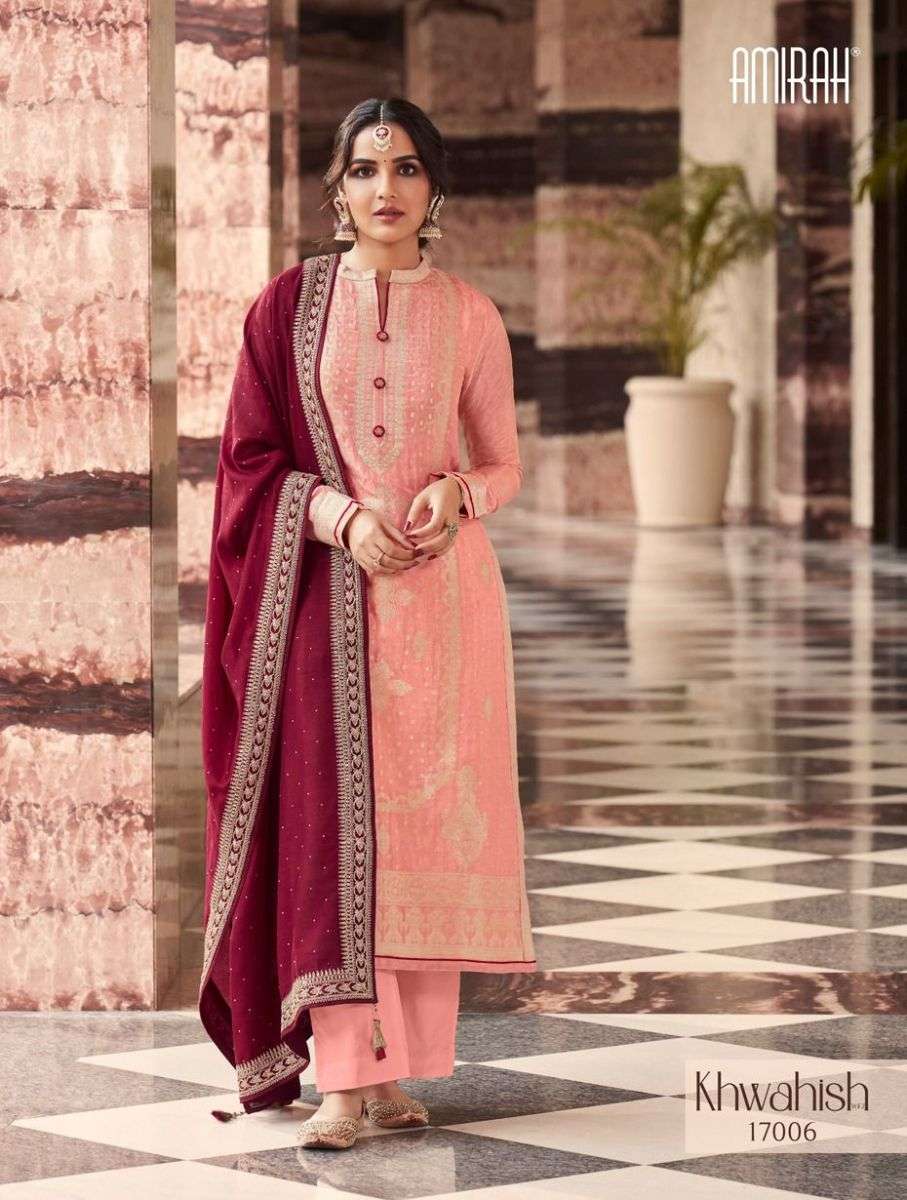 KHAWAISH VOL-2 BY AMIRAH DESIGNER WITH WORK VISCOSE DOLA SILK SUITS ARE AVAILABLE IN SINGLES AT WHOLESALE PRICE