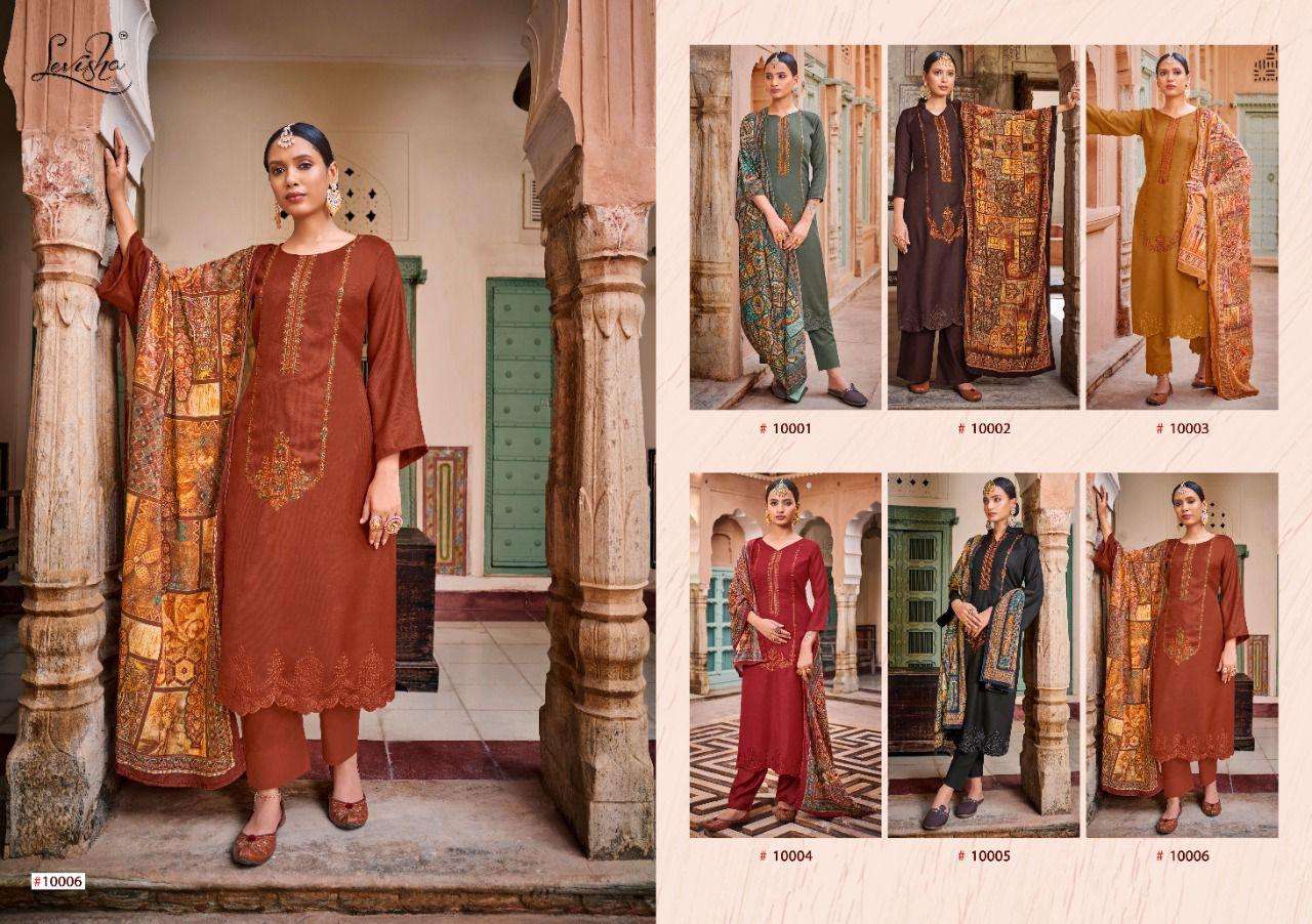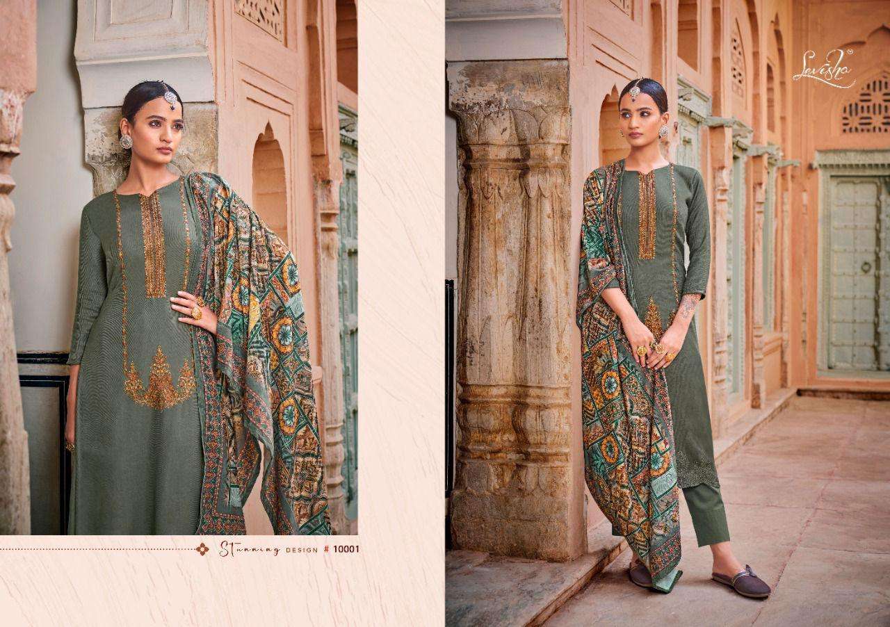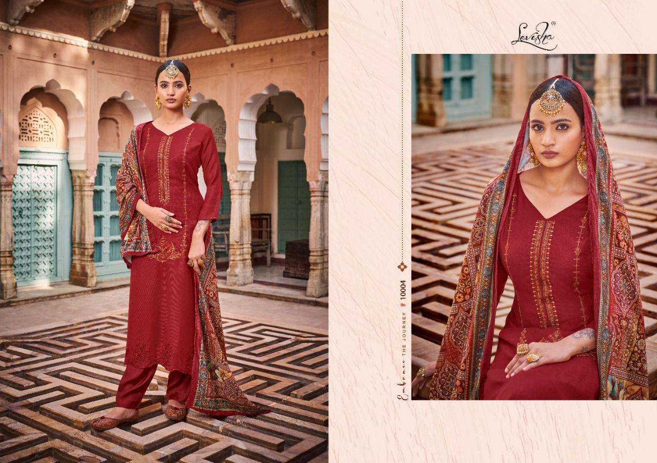 KHUSHBOO BY LEVISHA DESIGNER WITH KASHMIRI WORK PASHMINA SUITS ARE AVAILABLE AT WHOLESALE PRICE