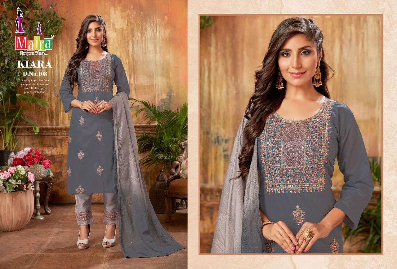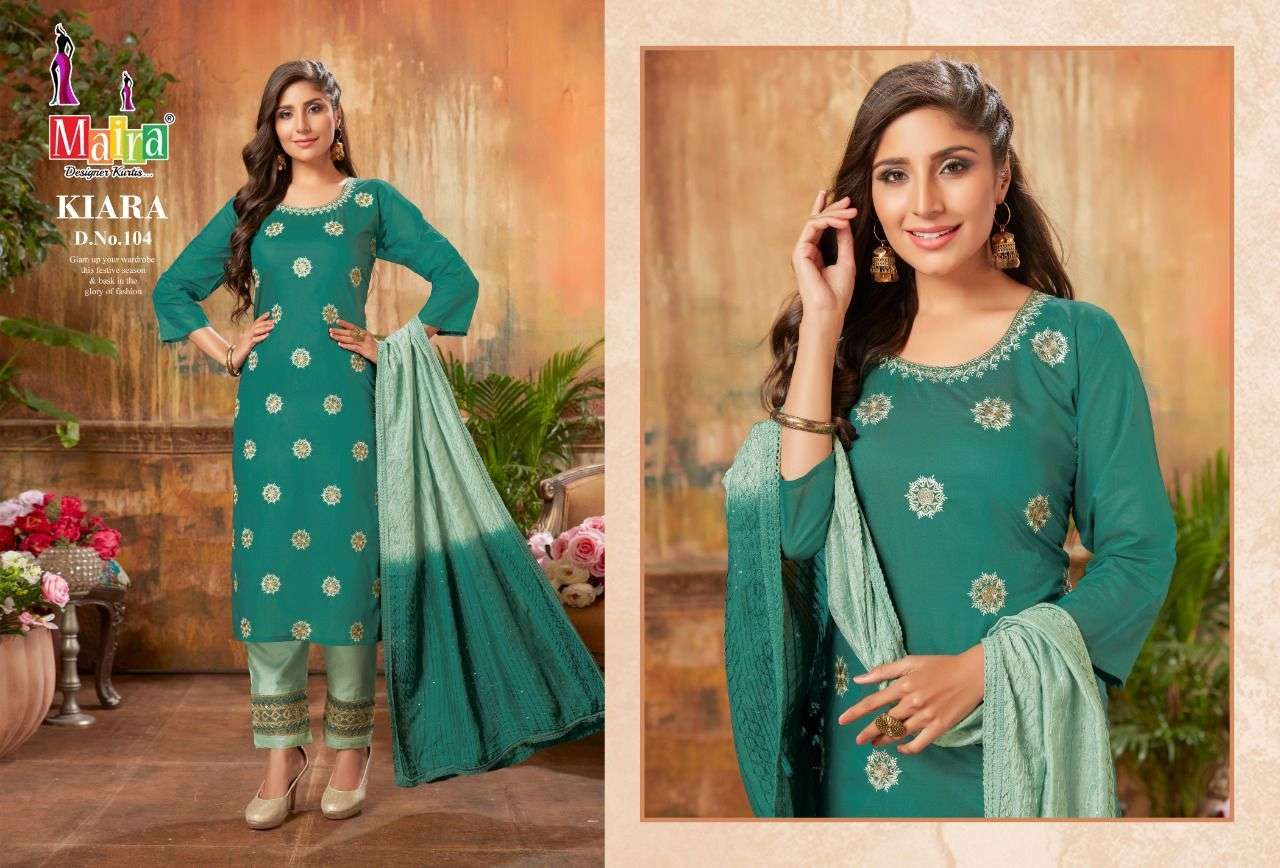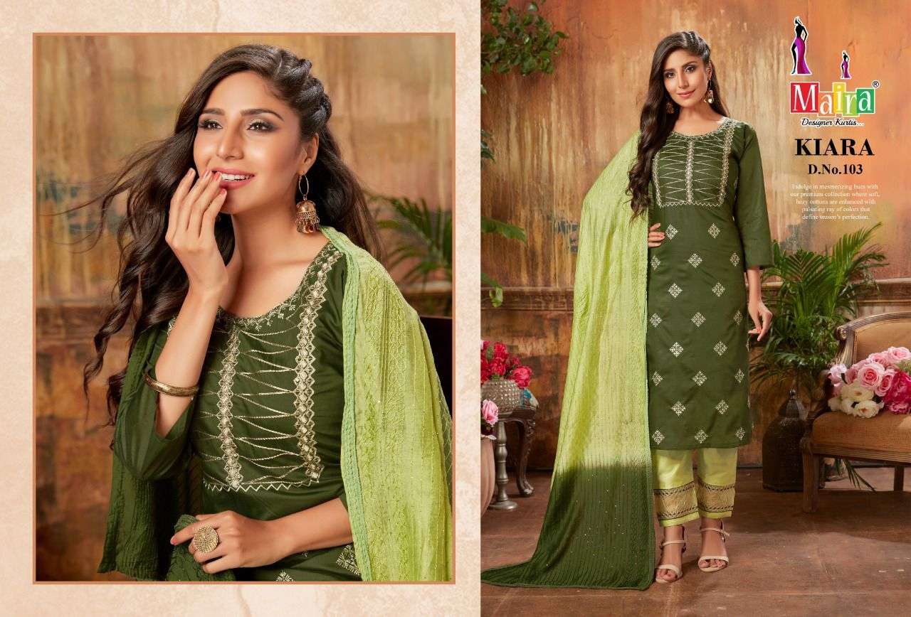 KIARA VOL-1 KURTI BY MAIRA DESIGNER WITH WORK BOMBAY SILK KURTI WITH BOTTOM AND DUPATTA ARE AVAILABLE AT WHOLESALE PRICE