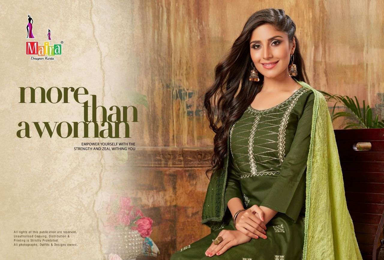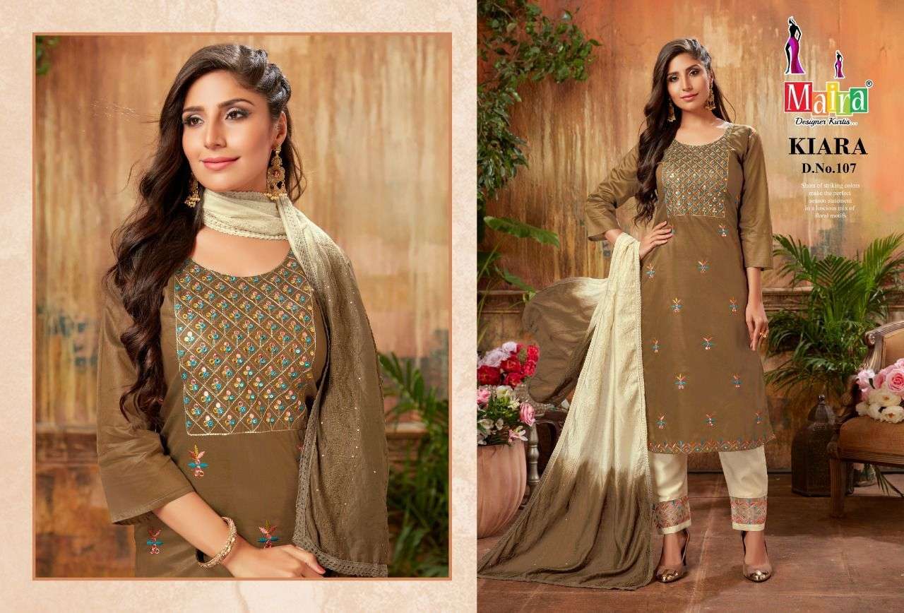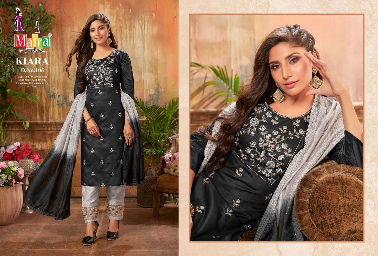 KIARA VOL-1 KURTI BY MAIRA DESIGNER WITH WORK BOMBAY SILK KURTI WITH BOTTOM AND DUPATTA ARE AVAILABLE AT WHOLESALE PRICE