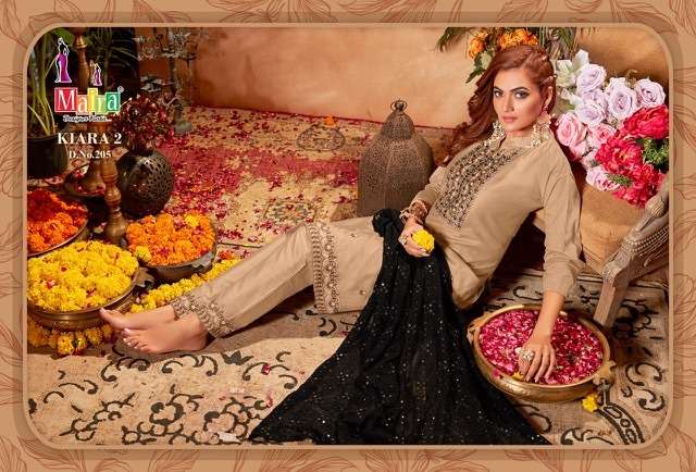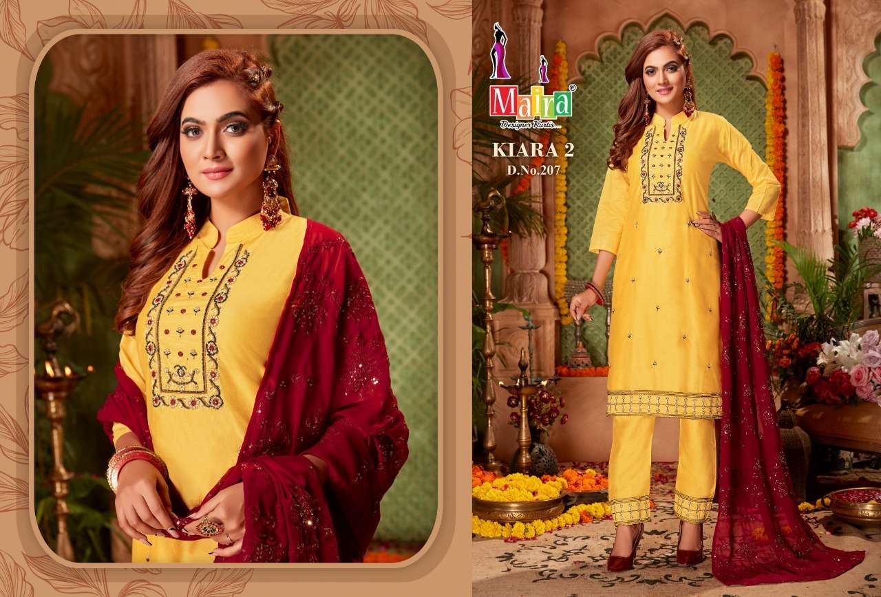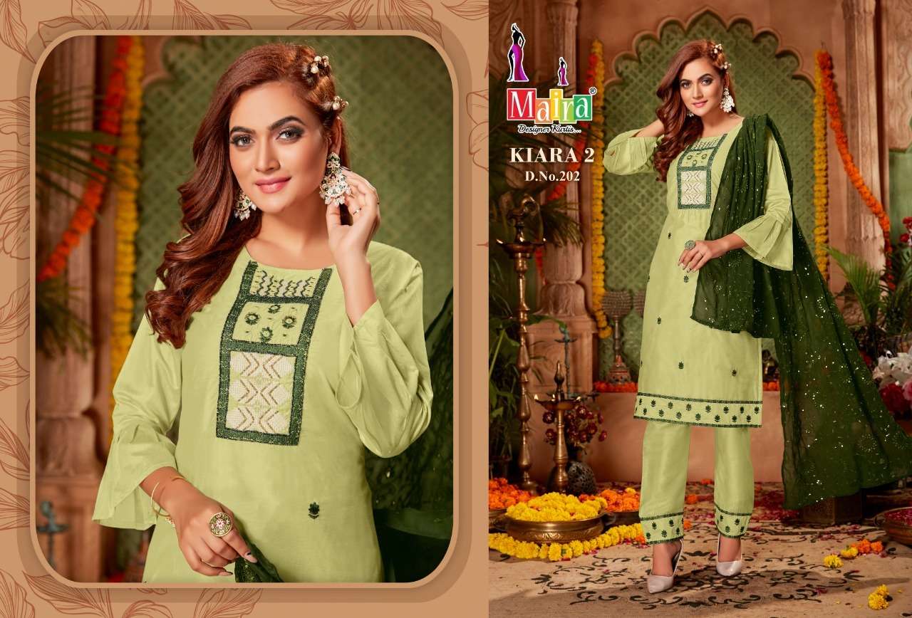 KIARA VOL-2 KURTI BY MAIRA DESIGNER WITH WORK BOMBAY SILK KURTI WITH BOTTOM AND DUPATTA ARE AVAILABLE AT WHOLESALE PRICE