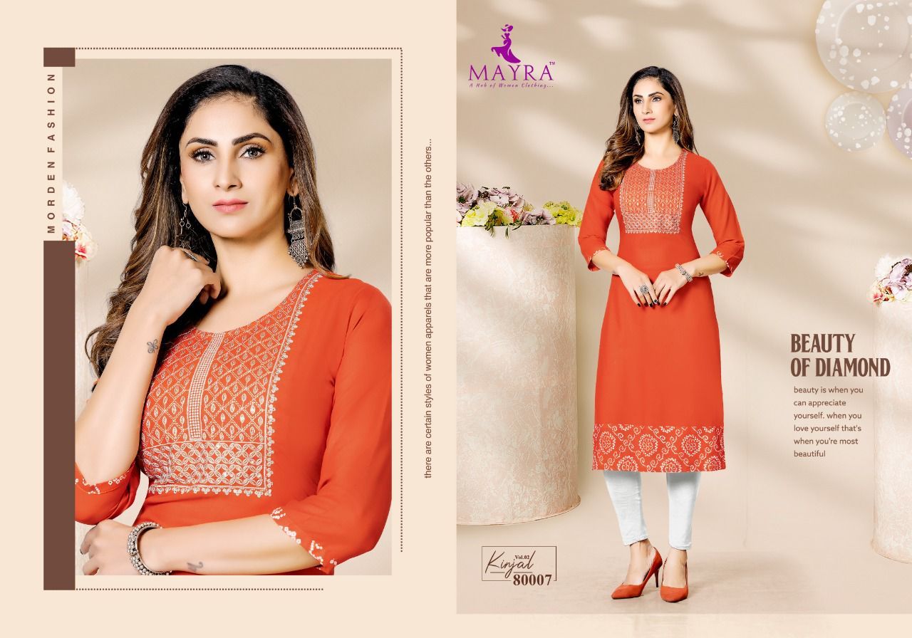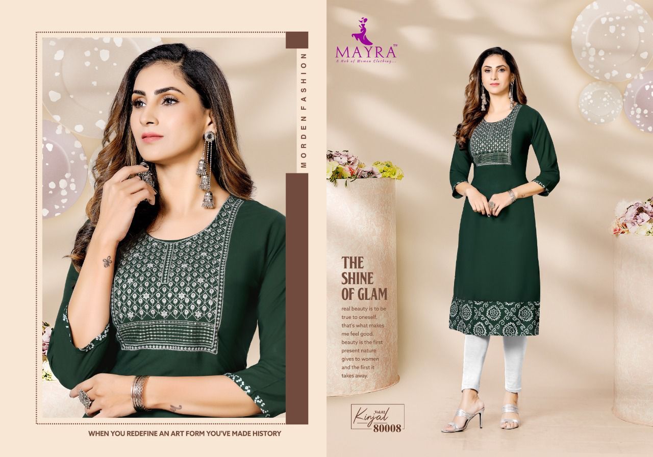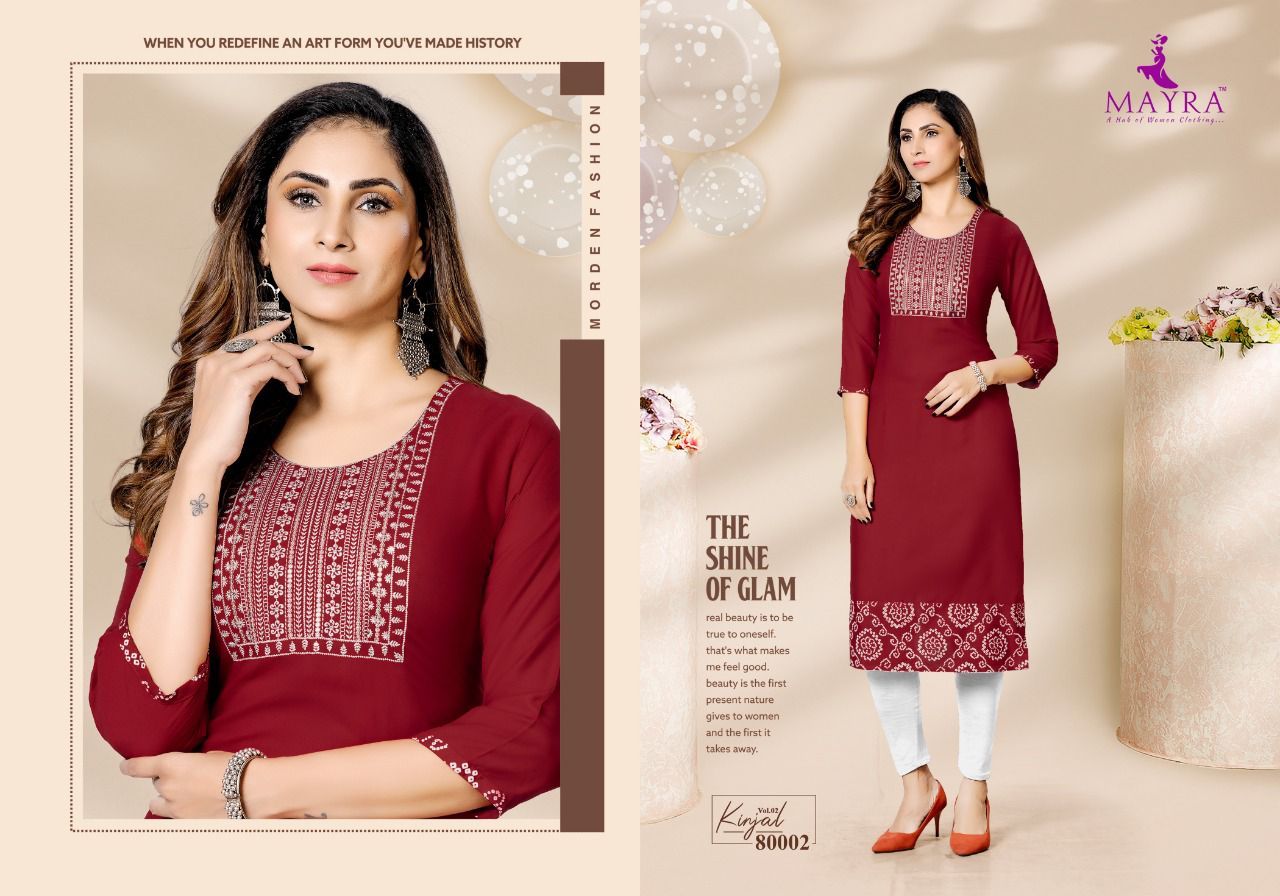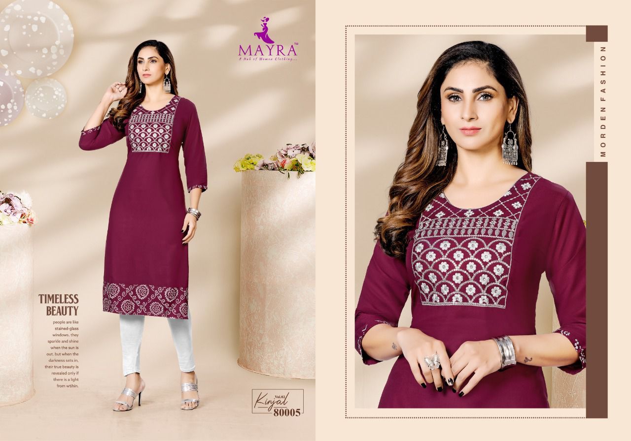 Kinjal Vol-2 Kurti By Mayra Designer With Work Rayon Kurtis Are Available At Wholesale Price