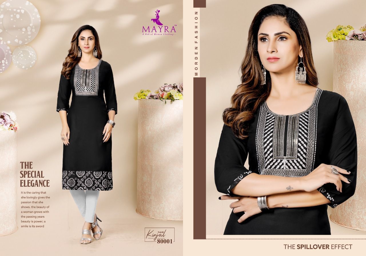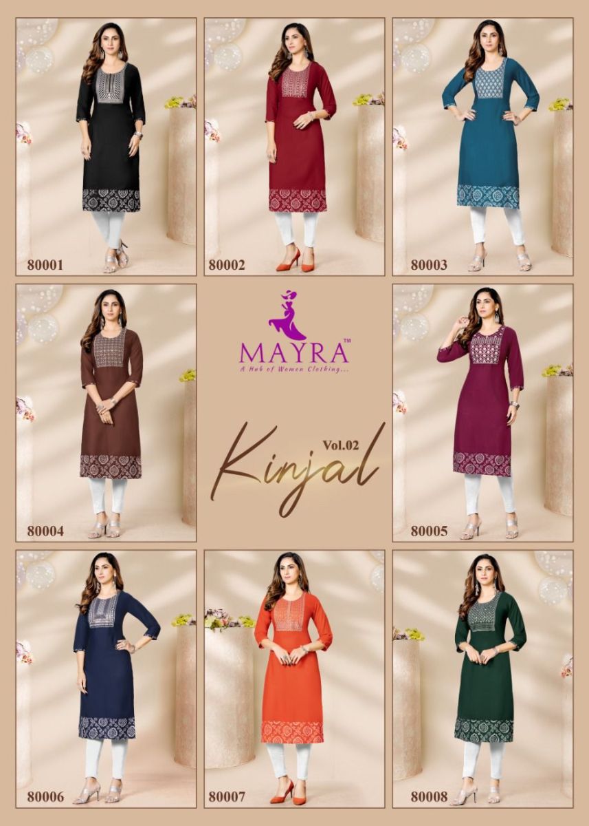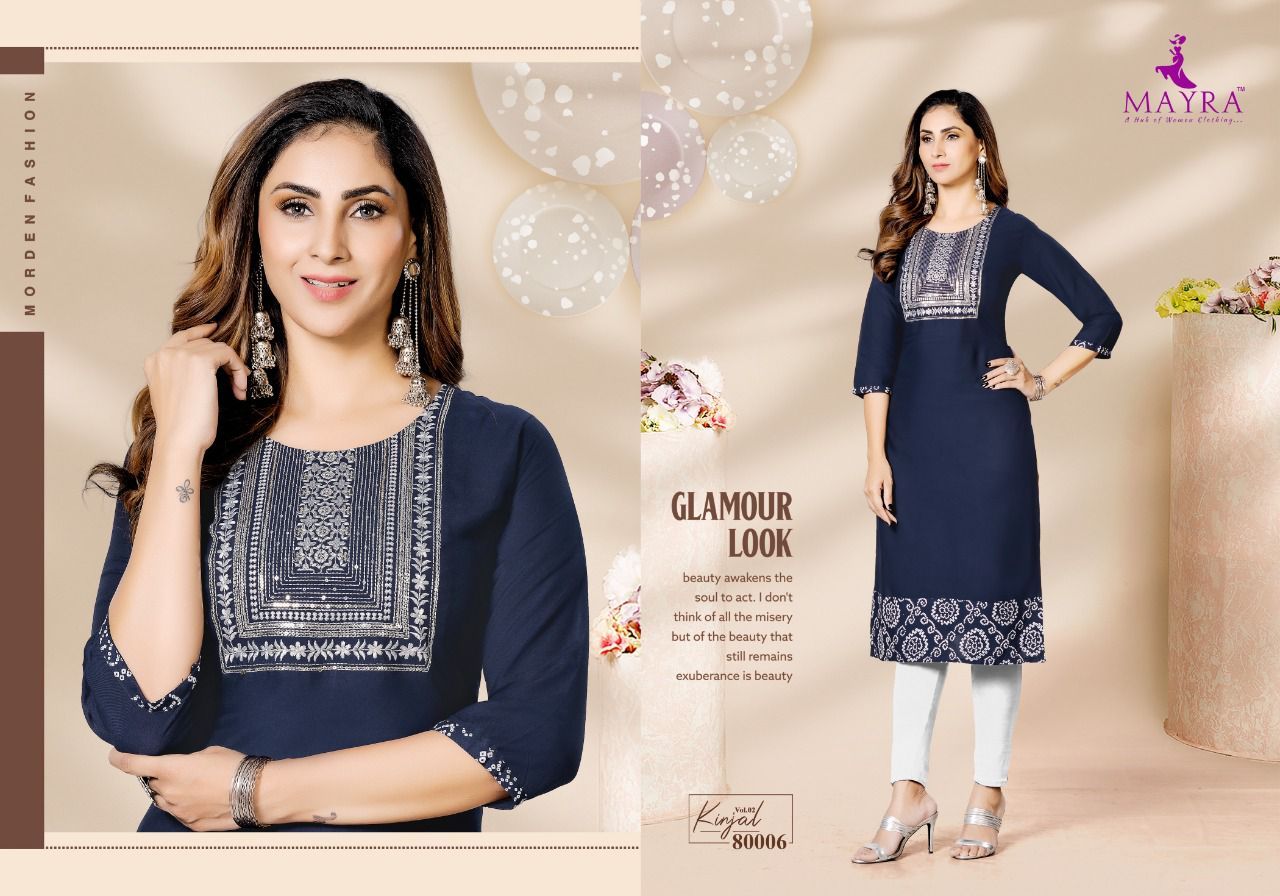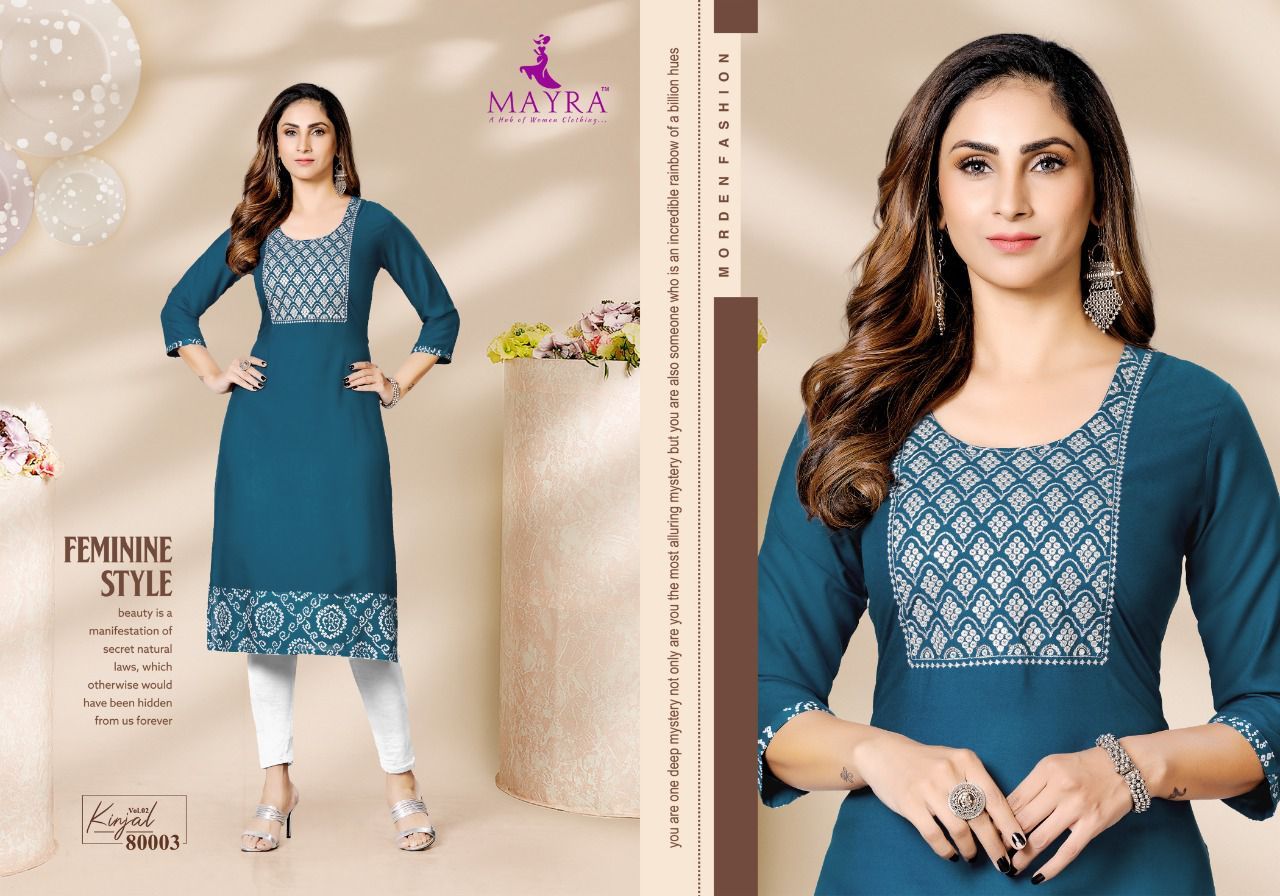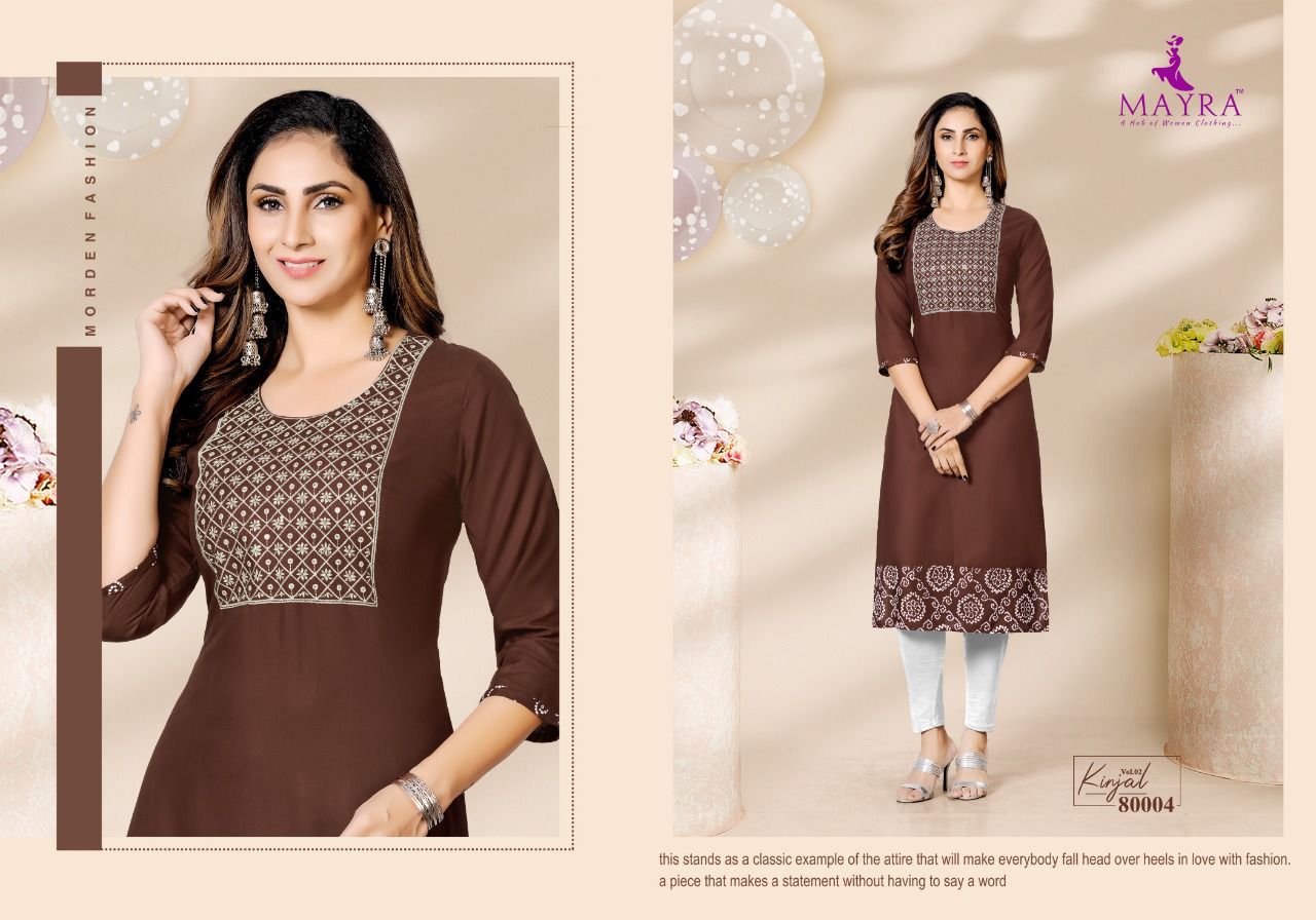 Kinjal Vol-2 Kurti By Mayra Designer With Work Rayon Kurtis Are Available At Wholesale Price
