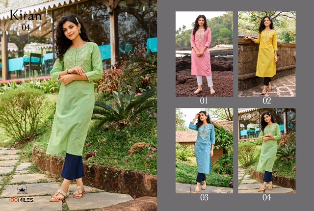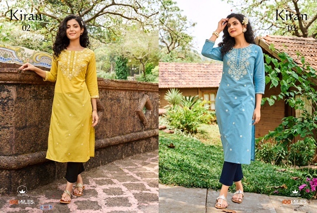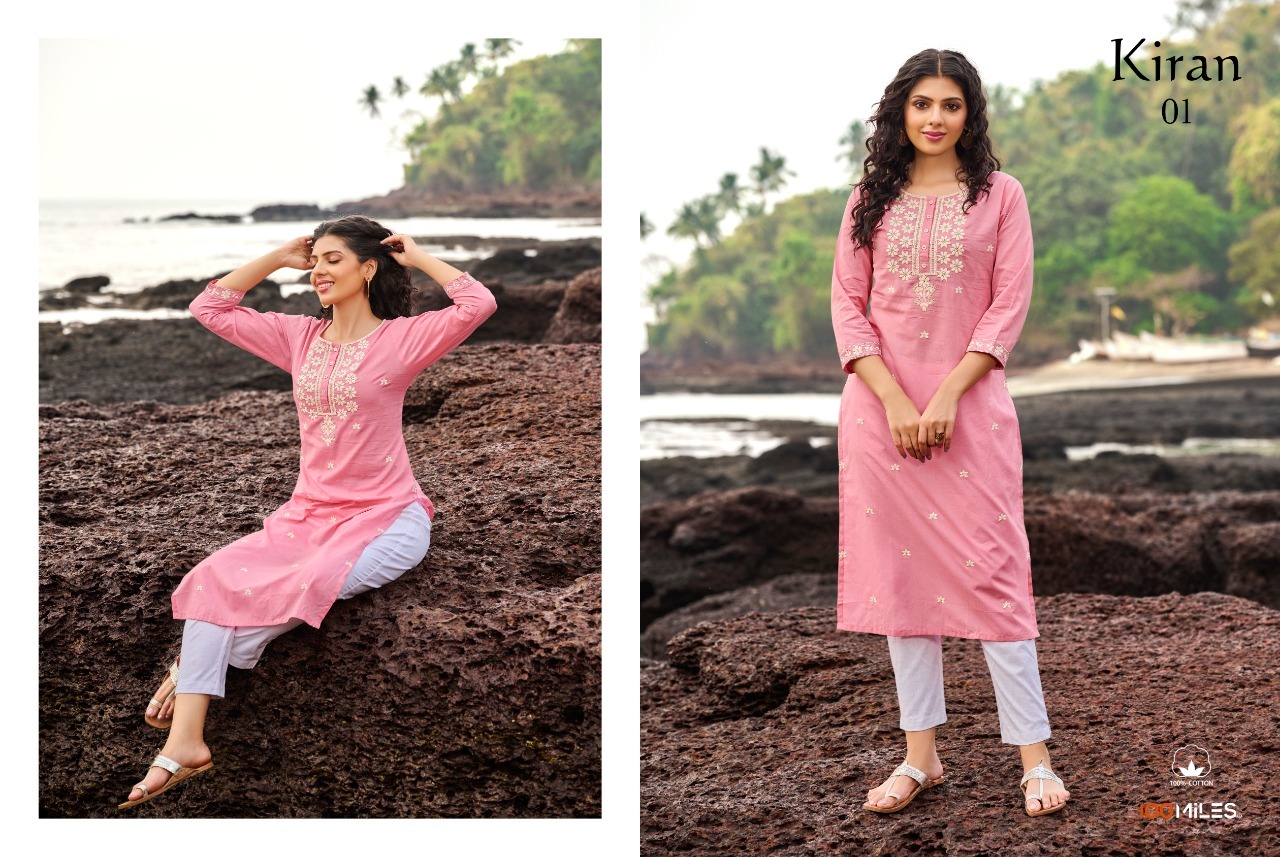 Kiran Kurti By 100 Miles Designer With Chikankari Work Cotton Kurtis Are Available At Wholesale Price