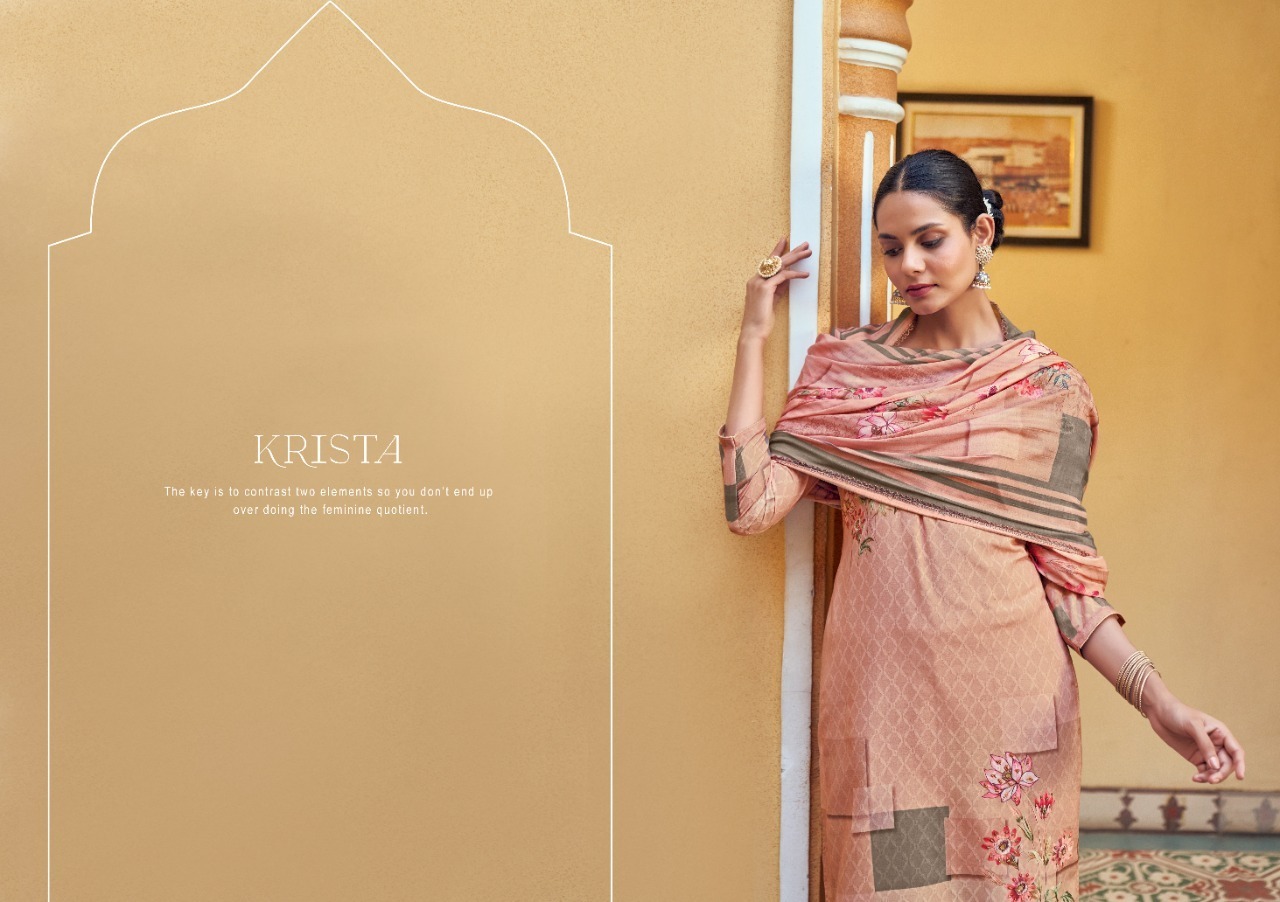 Krista By Kalarang Designer With Pribted And Hand Work Muslin Suits Are Available At Wholesale Price
