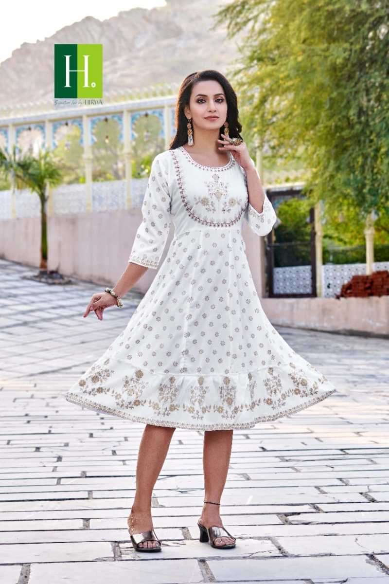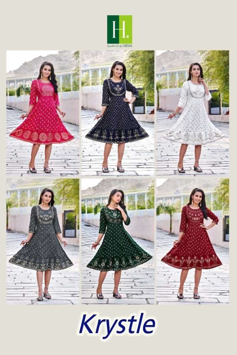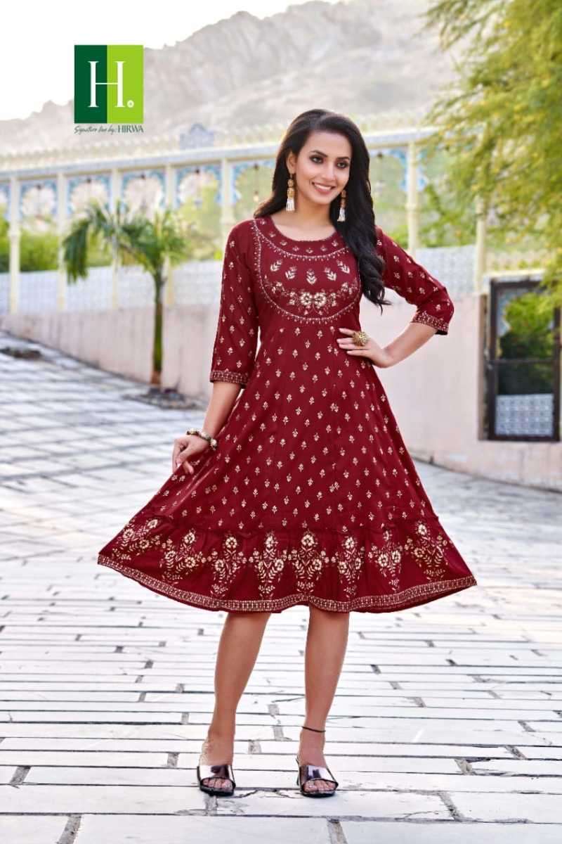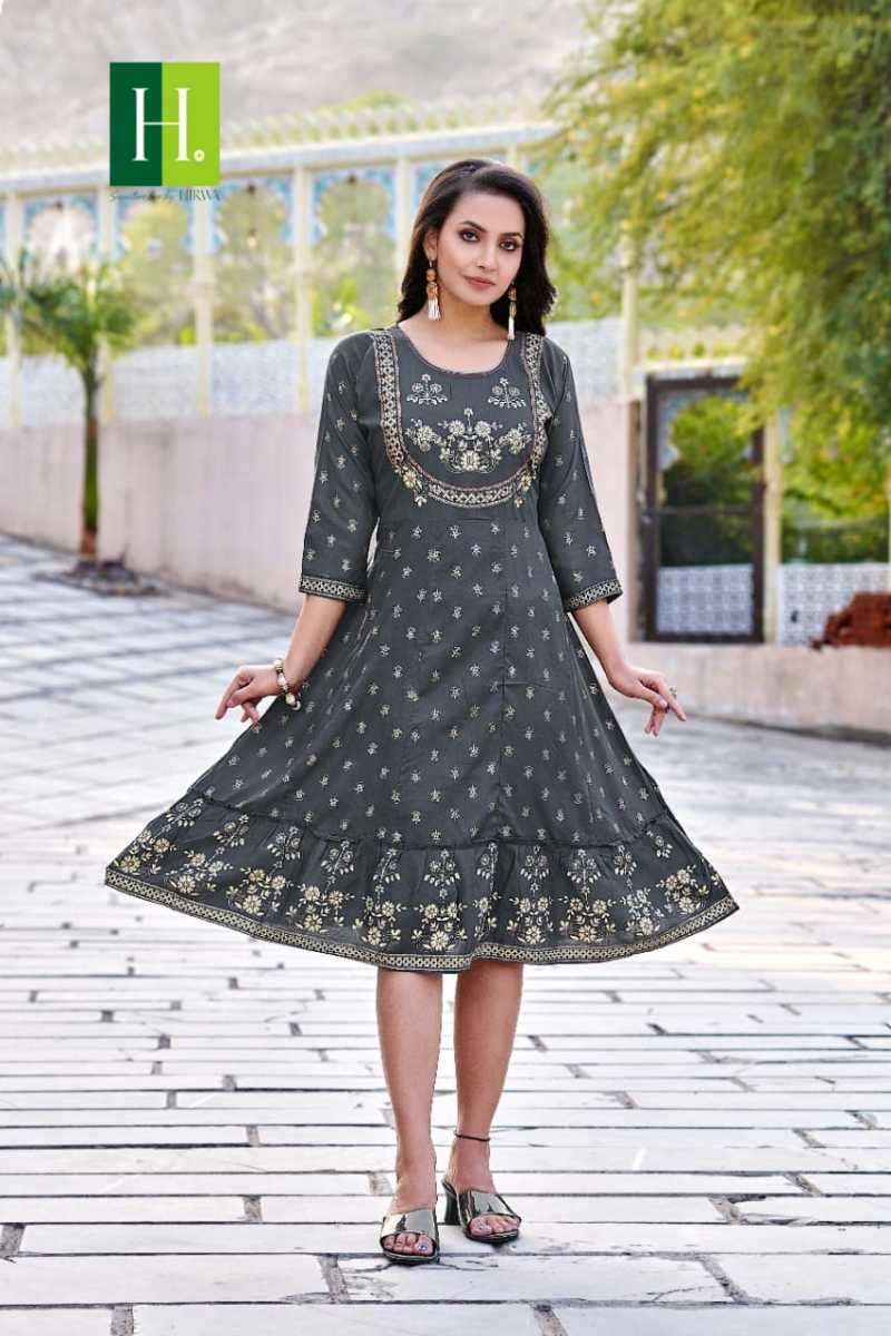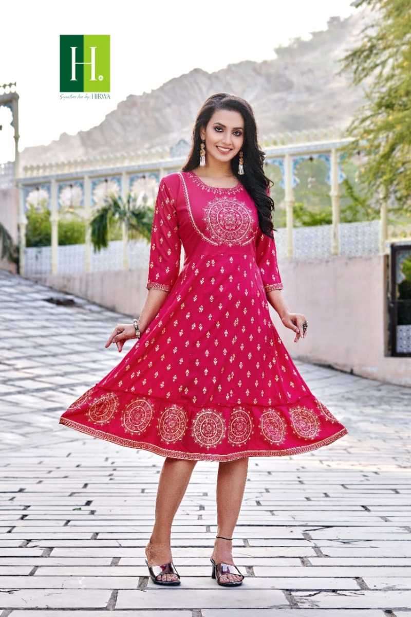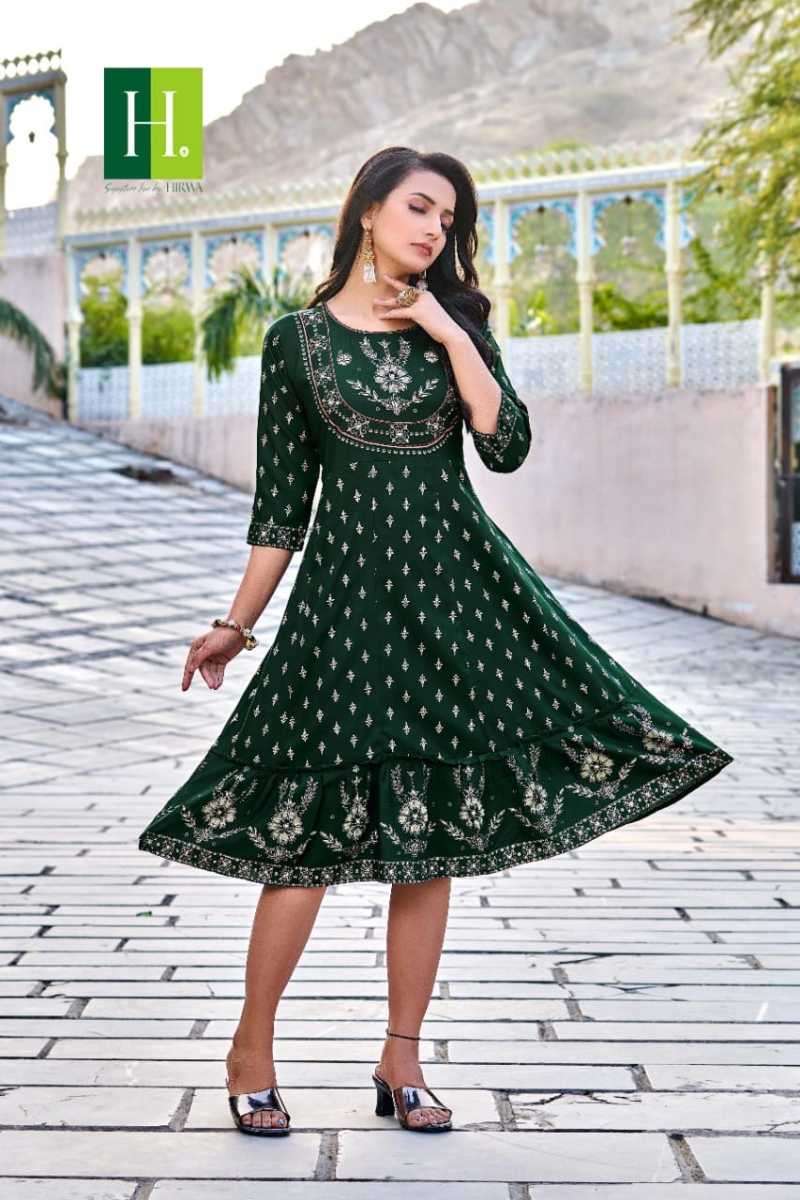 KRYSTLE KURTI BY HIRWA DESIGNER WITH WORK RAYON GHERA KURTIS ARE AVAILABLE AT WHOLESALE PRICE