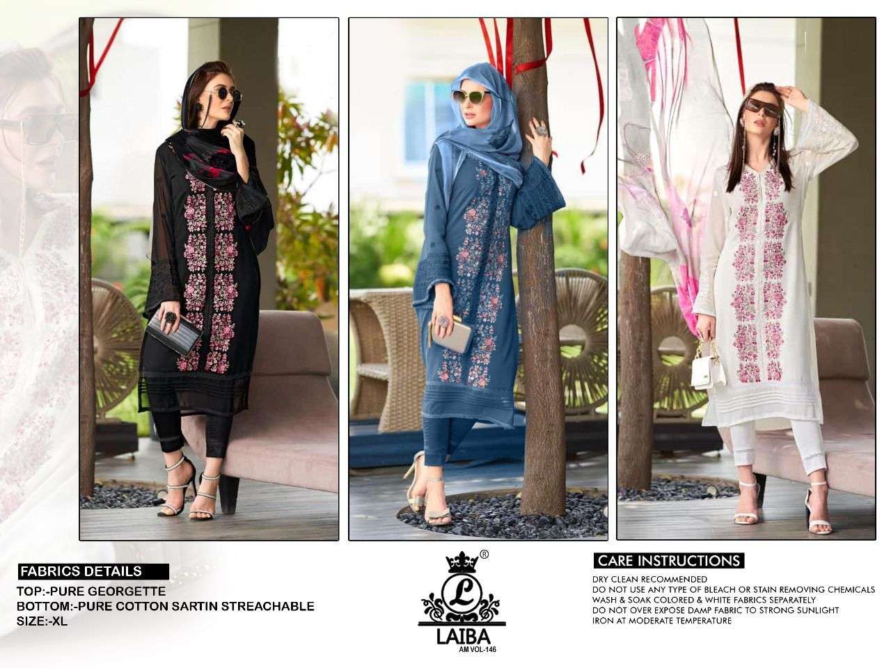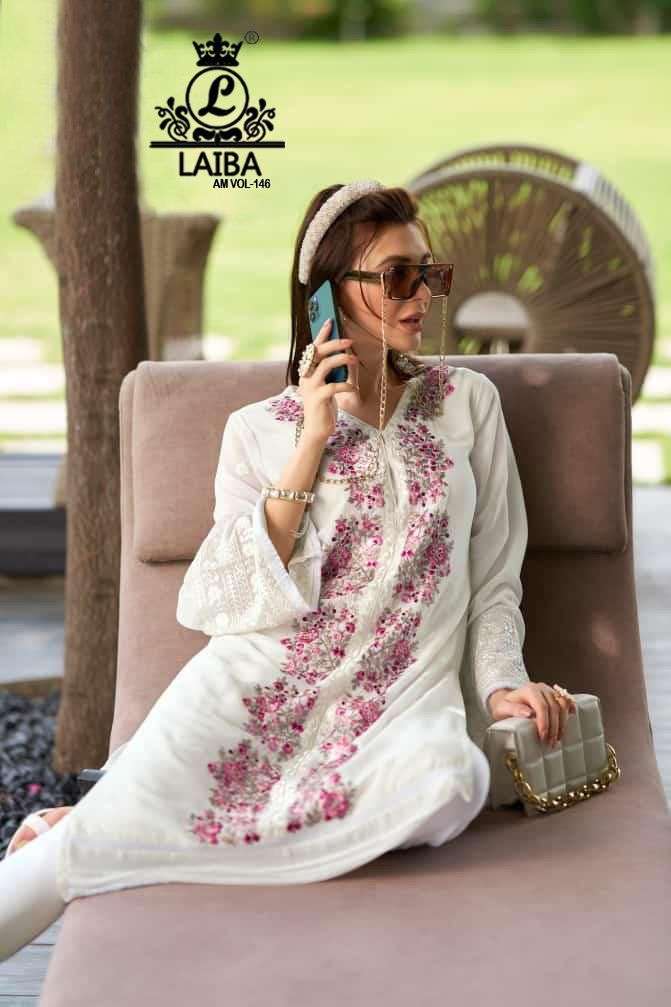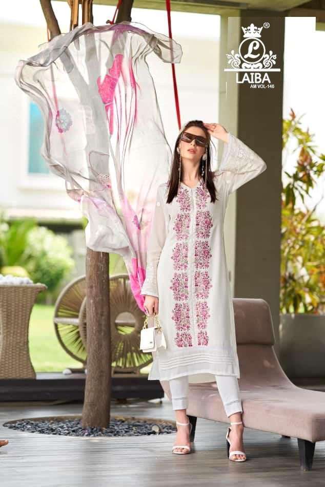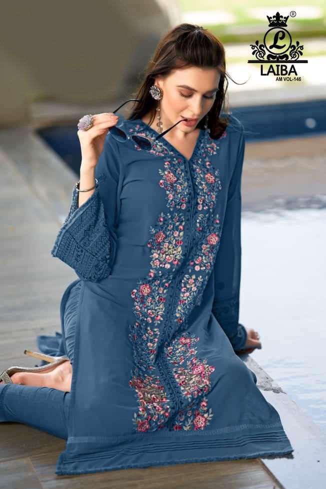 LAIBA AM VOL-146 DESIGNER WITH WORK GEORGETTE PAKISTANI STYLE KURTI WITH PANT AND DUPATTA ARE AVAILABLE AT WHOLESALE PRICE