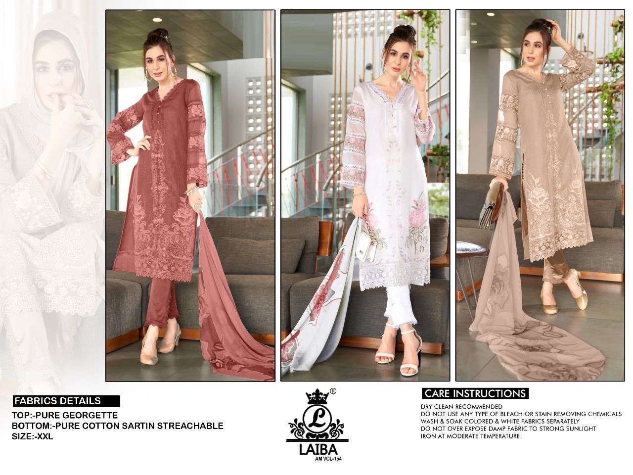 LAIBA AM VOL-154 DESIGNER WITH WORK GEORGETTE PAKISTANI STYLE KURTI WITH PANT AND DUPATTA ARE AVAILABLE AT WHOLESALE PRICE