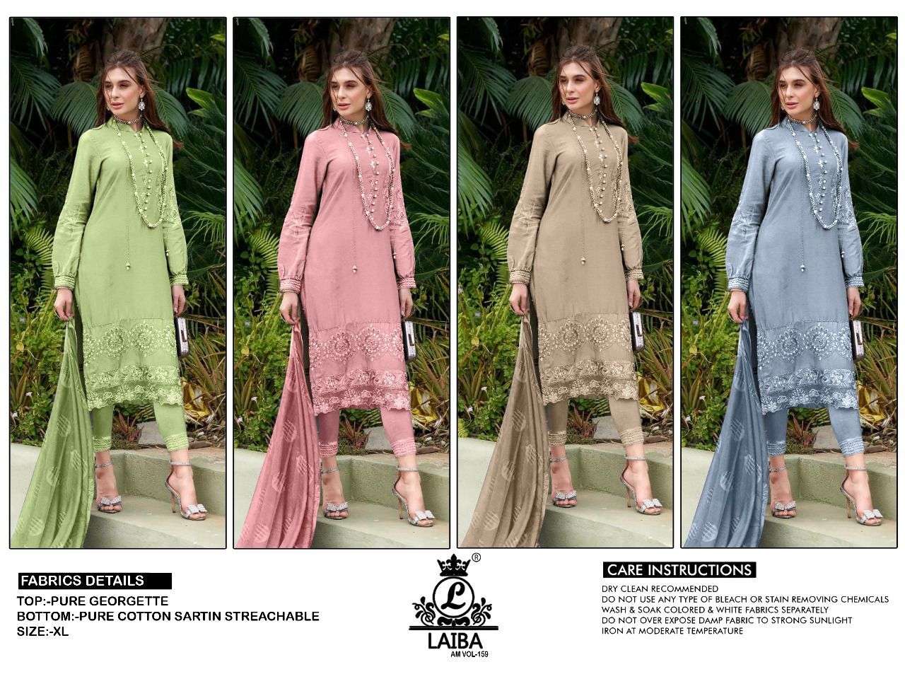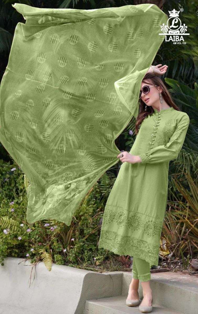 LAIBA AM VOL-159 DESIGNER WITH WORK COTTON PAKISTANI STYLE KURTI WITH PANT AND DUPATTA ARE AVAILABLE AT WHOLESALE PRICE