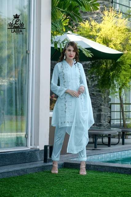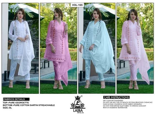 LAIBA AM VOL-165 DESIGNER WITH WORK GEORGETTE PAKISTANI STYLE KURTI WITH PANT AND DUPATTA ARE AVAILABLE AT WHOLESALE PRICE