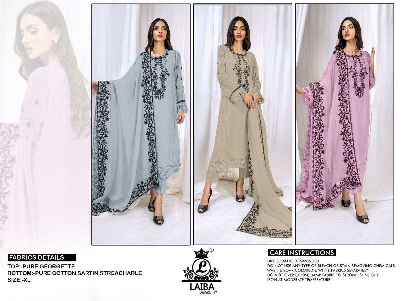 LAIBA AM VOL-177 DESIGNER WITH WORK GEORGETTE PAKISTANI STYLE KURTI WITH PANT AND DUPATTA ARE AVAILABLE AT WHOLESALE PRICE