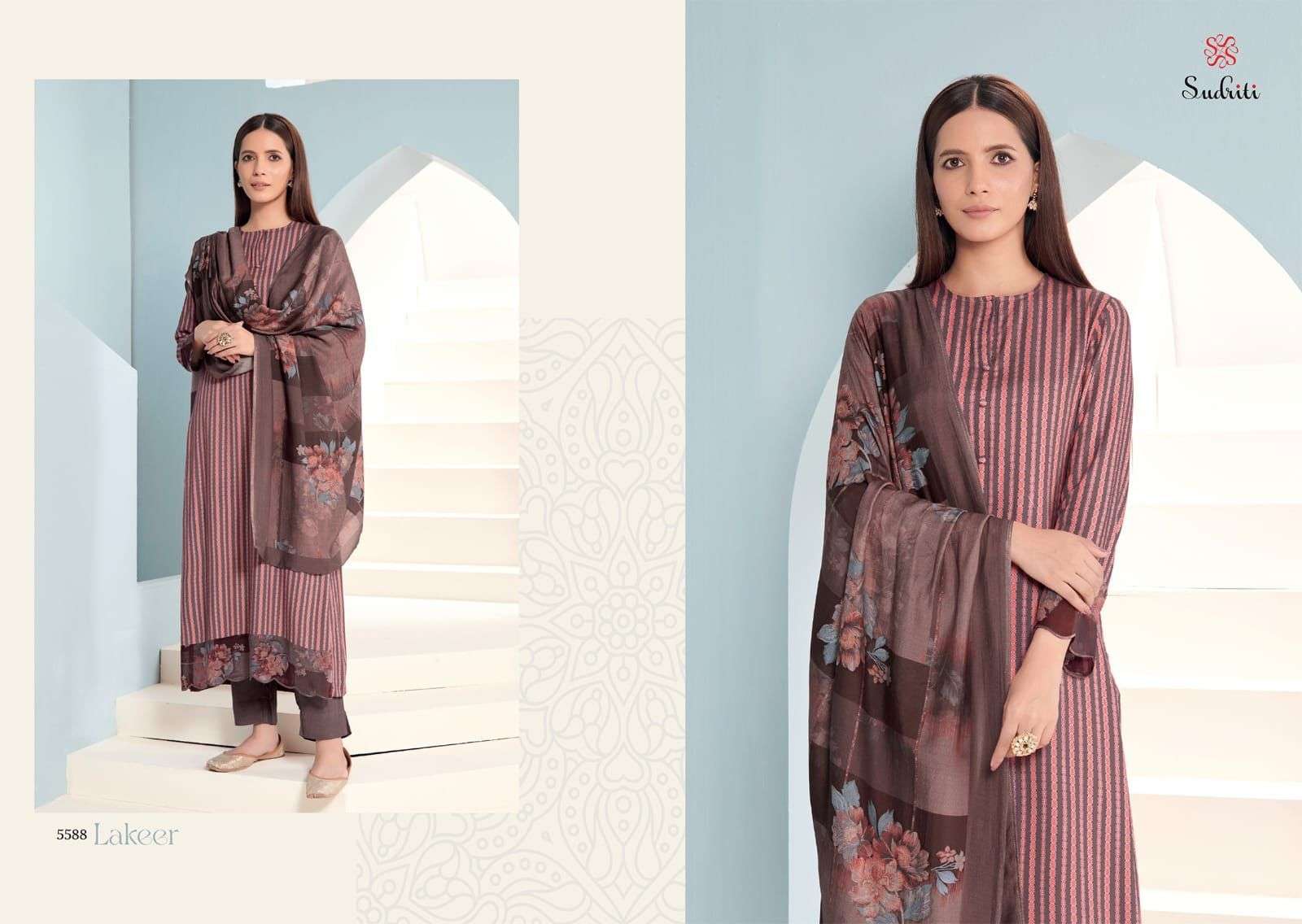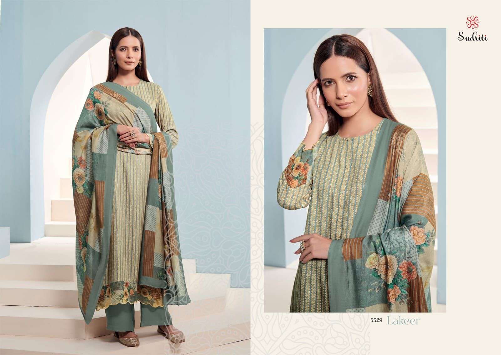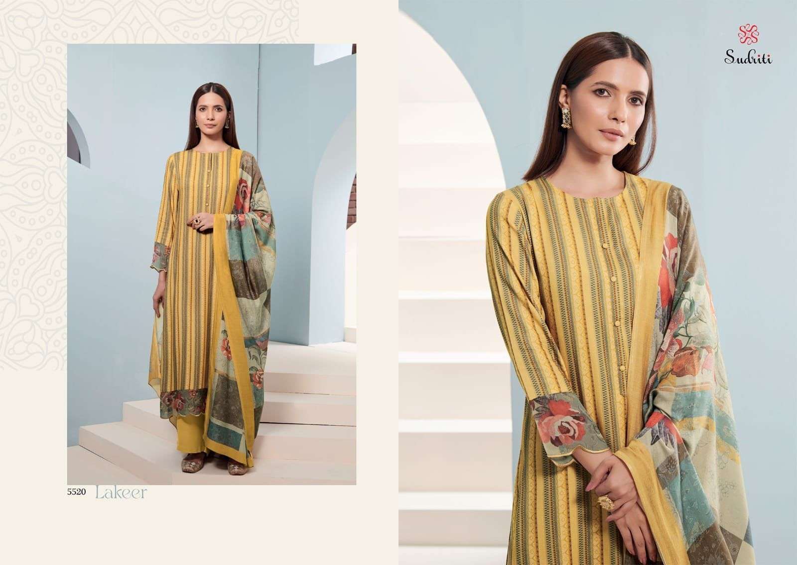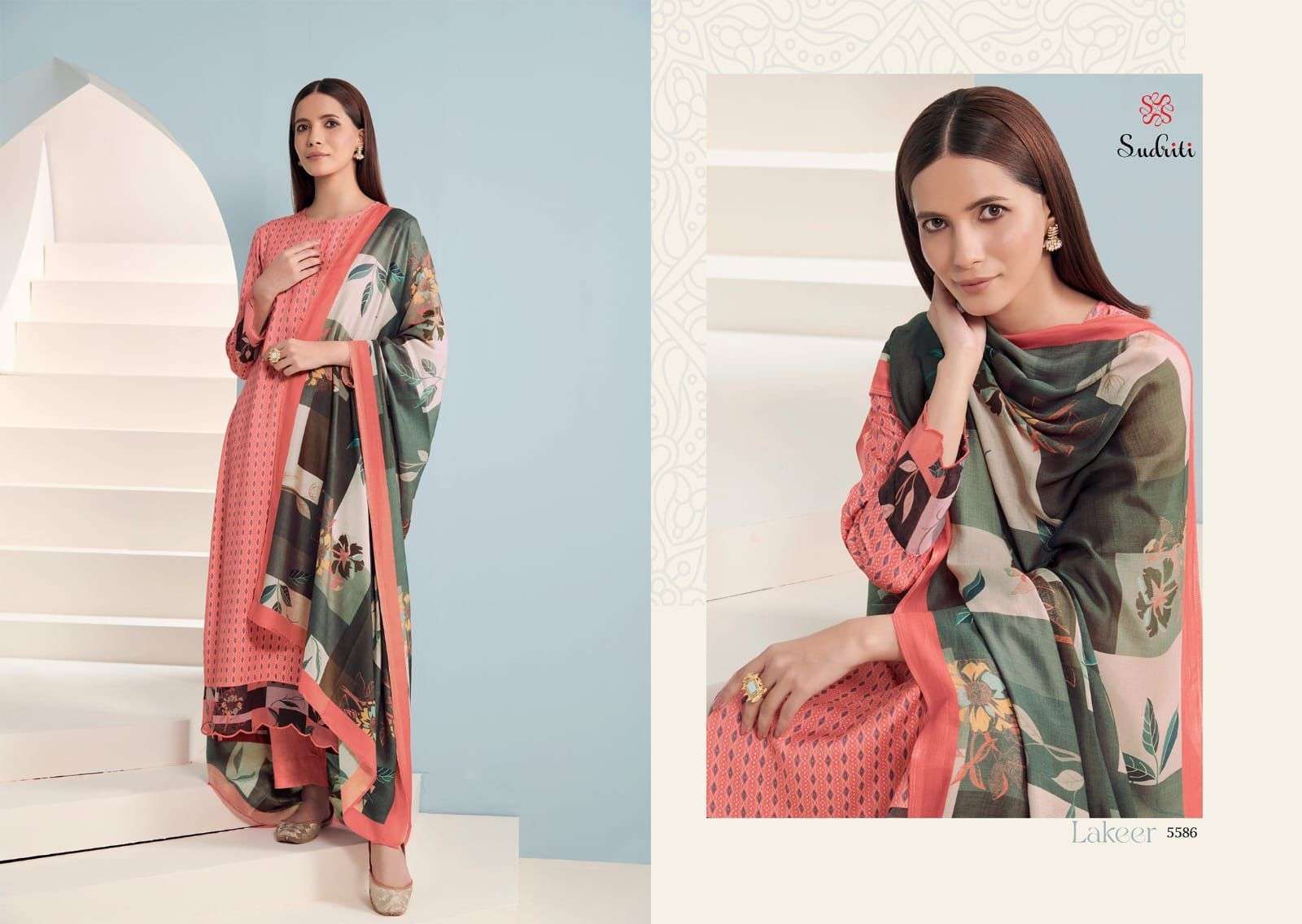 LAKEER BY SUDRITI DESIGNER WITH PRINTED AND EMBROIDERY WORK TWILL PASHMINA SUITS ARE AVAILABLE AT WHOLESALE PRICE