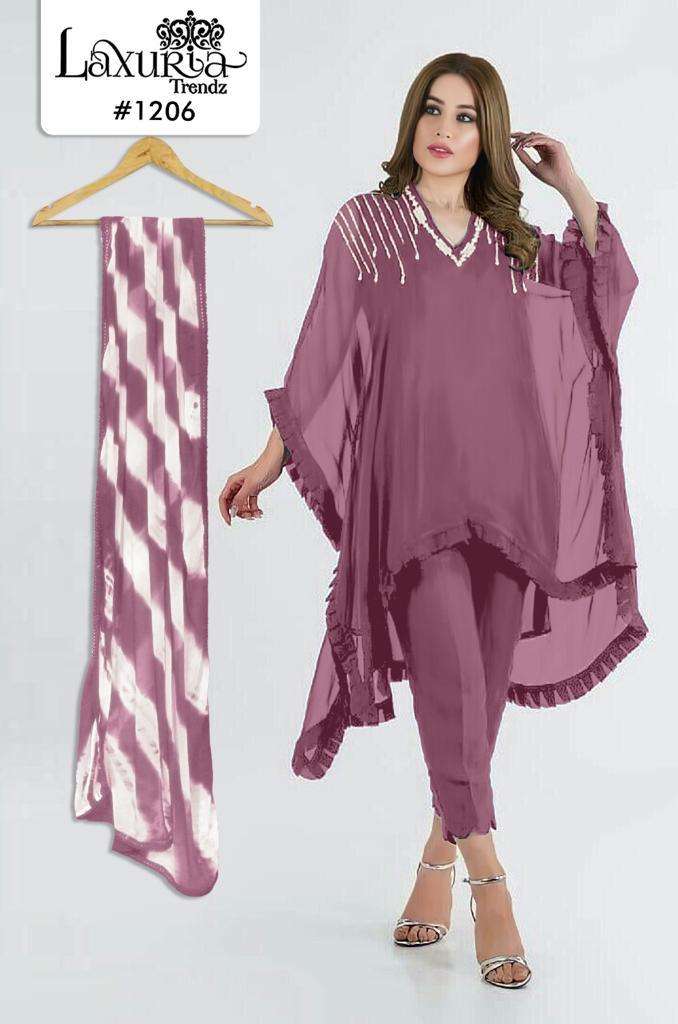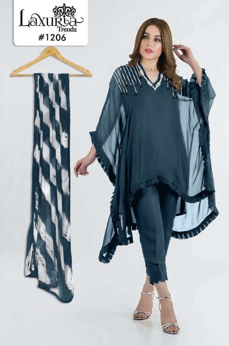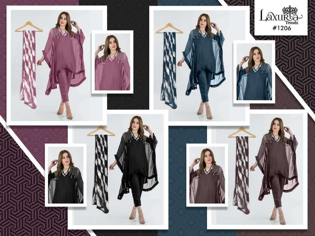 LAXURIA TRENDZ 1206 SERIES DESIGNER WITH WORK GEORGETTE KURTI WITH PANT AND DUPATTA ARE AVAILABLE AT WHOLESALE PRICE