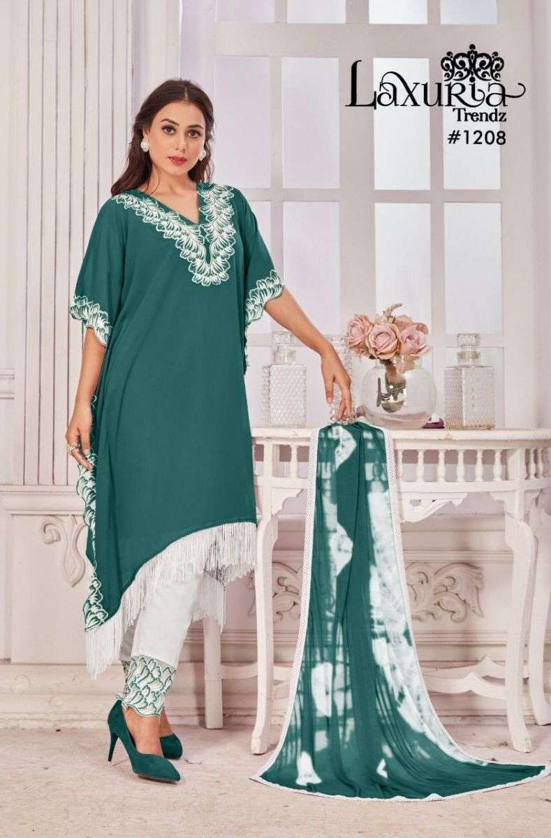 LAXURIA TRENDZ 1208 SERIES DESIGNER WITH WORK GEORGETTE PAKISTANI STYLE KURTI WITH PANT AND DUPATTA ARE AVAILABLE AT WHOLESALE PRICE
