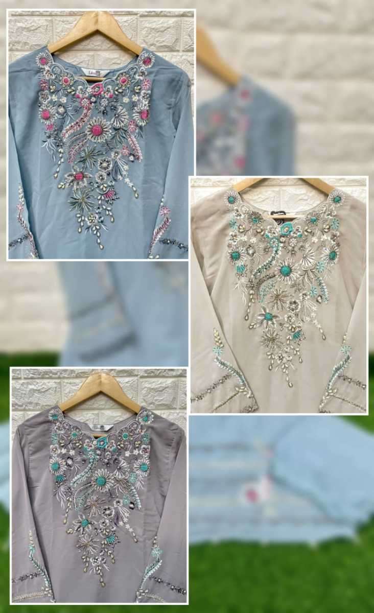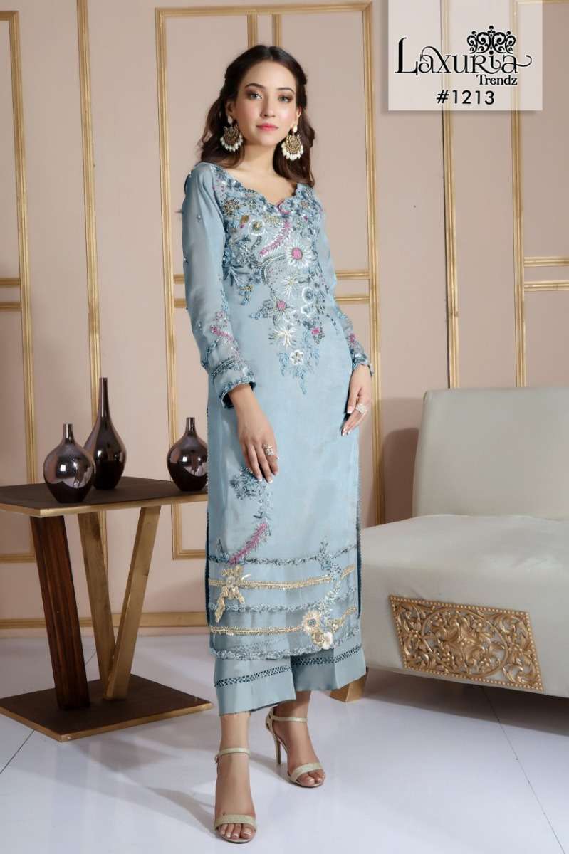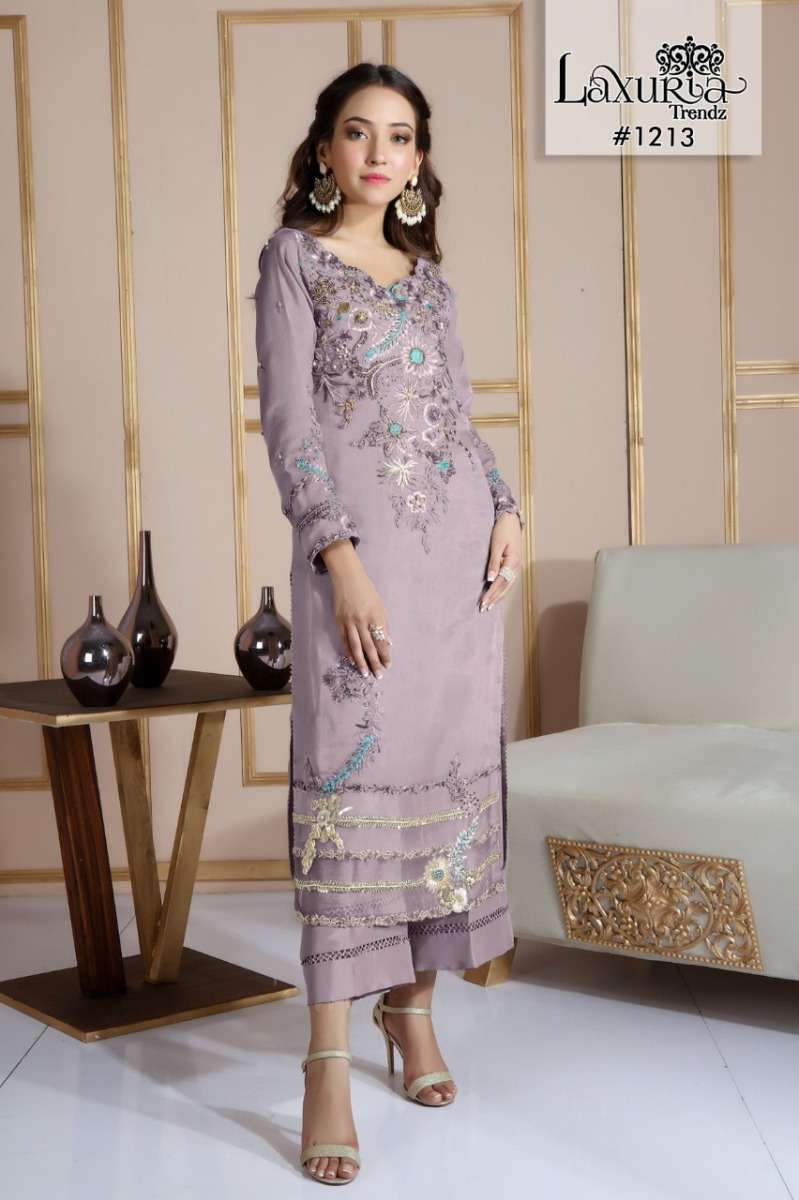 LAXURIA TRENDZ 1213 SERIES DESIGNER WITH WORK GEORGETTE KURTI WITH PANT AND DUPATTA ARE AVAILABLE AT WHOLESALE PRICE
