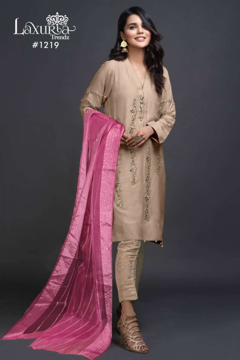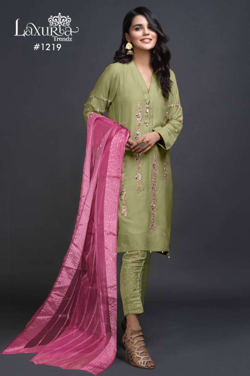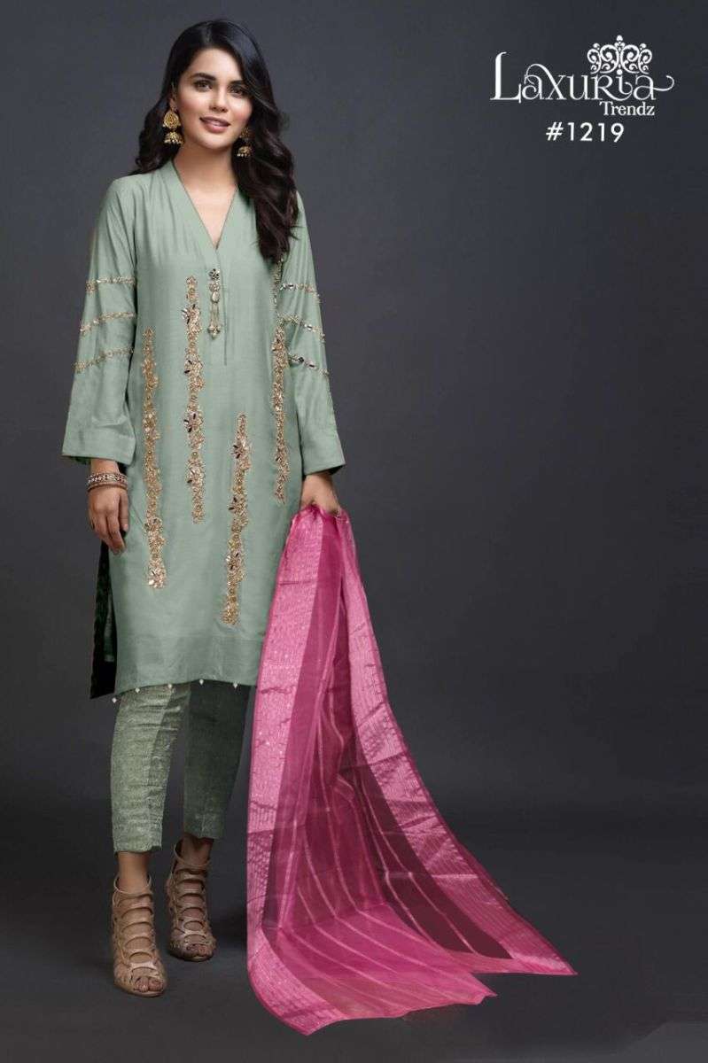 LAXURIA TRENDZ 1219 SERIES DESIGNER WITH WORK SATIN KURTI WITH PANT AND DUPATTA ARE AVAILABLE AT WHOLESALE PRICE