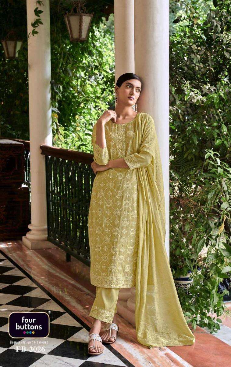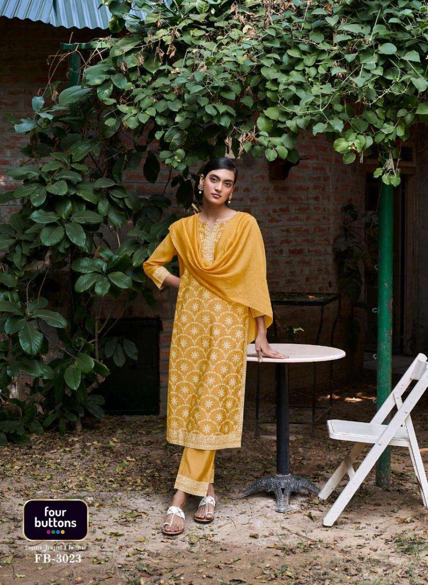 LEMON VOL-6 KURTI BY FOUR BUTTONS DESIGNER WITH WORK CHANDERI SILK KURTI WITH PANT AND DUPATTA ARE AVAILABLE AT WHOLESALE PRICE