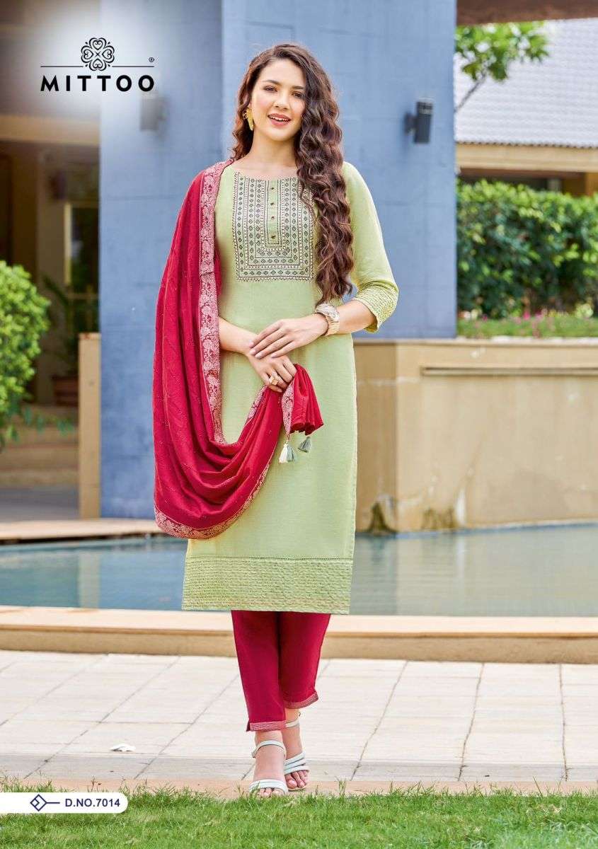 LIFE STYLE VOL-2 KURTI BY MITTO DESIGNER WITH HAND WORK VISCOSE SILK KURTI WITH PANT AND DUPATTA ARE AVAILABLE AT WHOLESALE PRICE