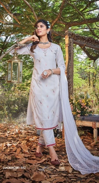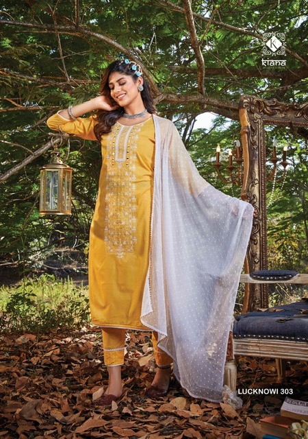 Lucknowi Vol-3 Kurti By Kiana Designer With Work Cotton Kurti With Pant And Dupatta Are Available At Wholesale Price