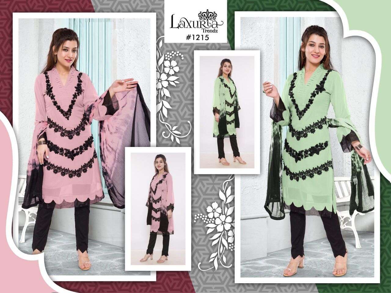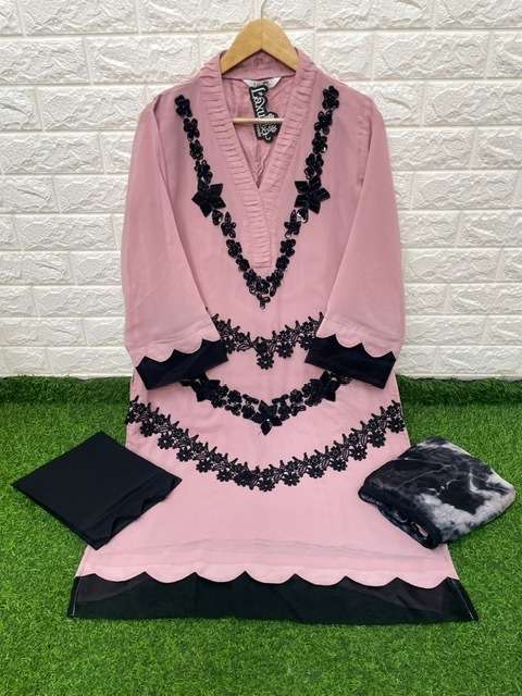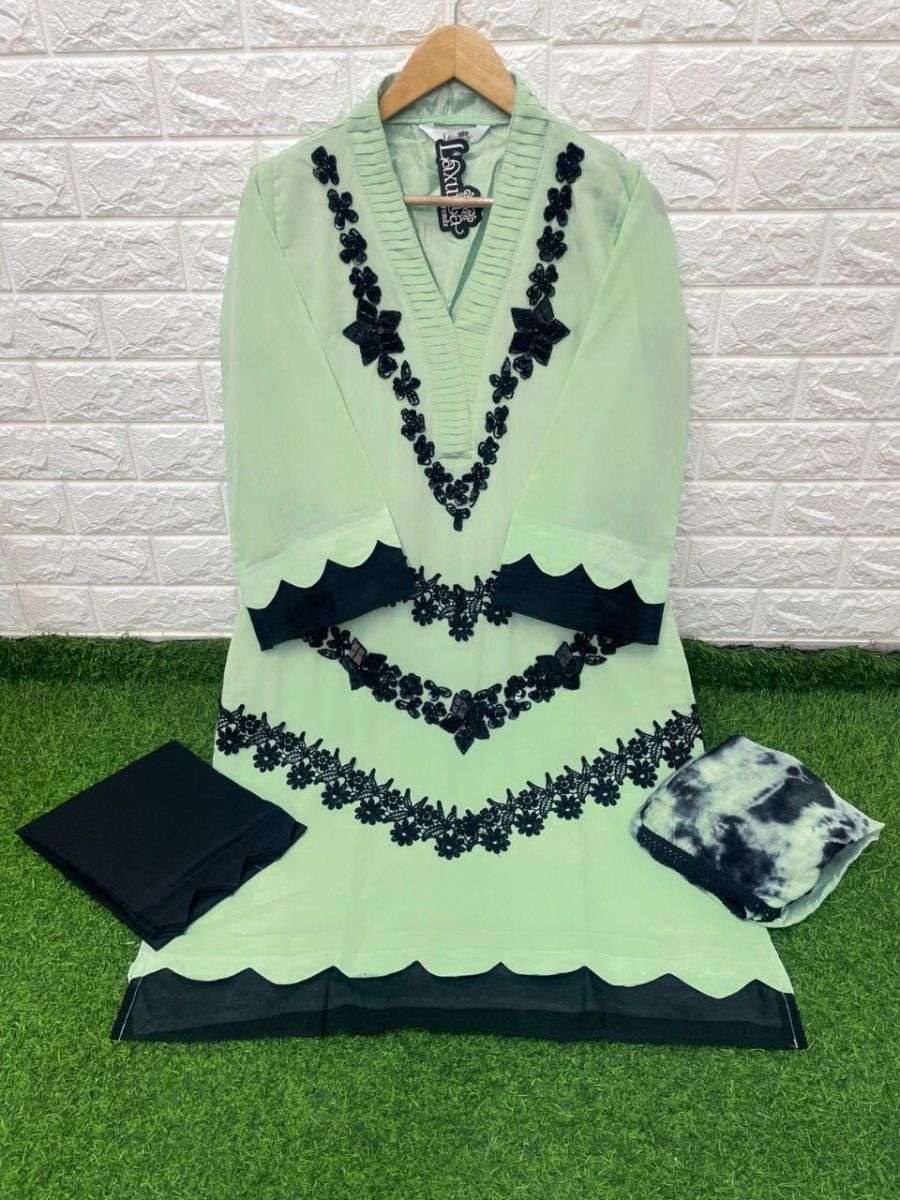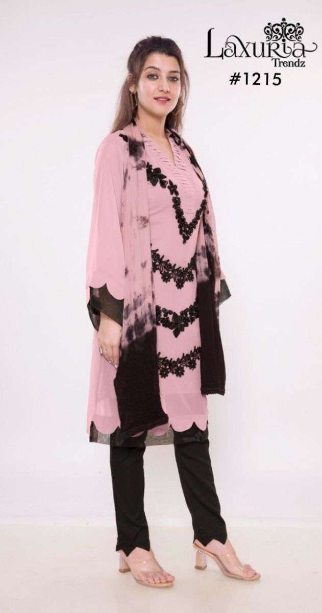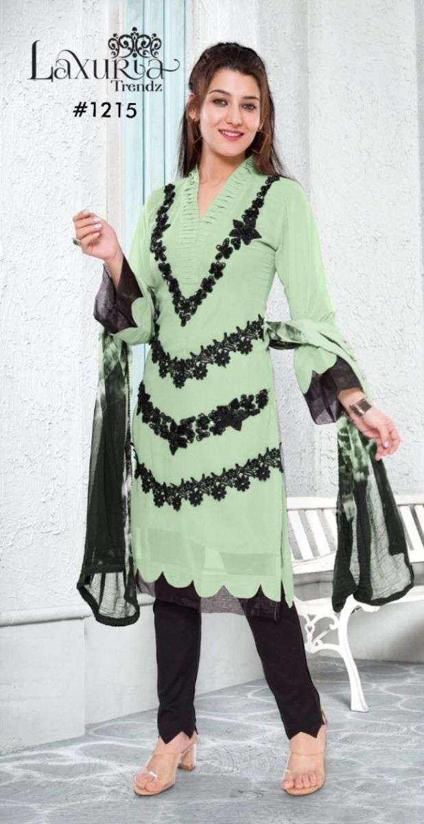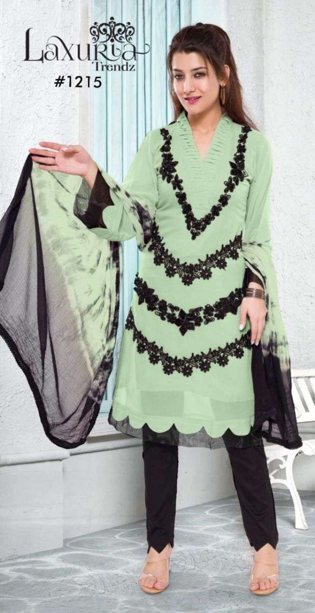 LUXURIA TRENZ 1215 SERIES DESIGNER WITH WORK GEORGETTE PAKISTANI STYLE KURTI WITH BOTTOM AND DUPATTA ARE AVAILABLE AT WHOLESALE PRICE