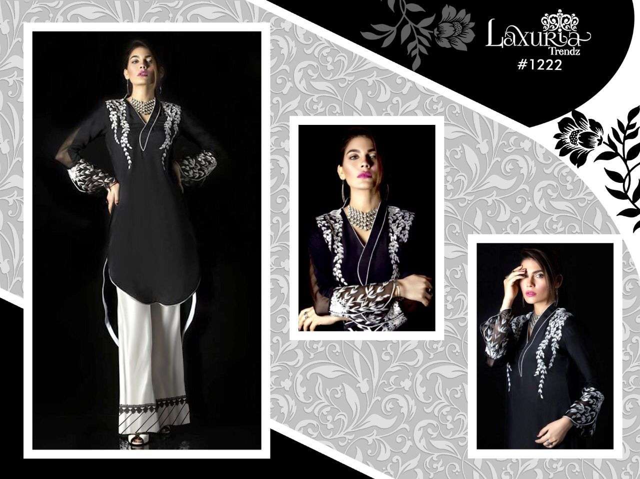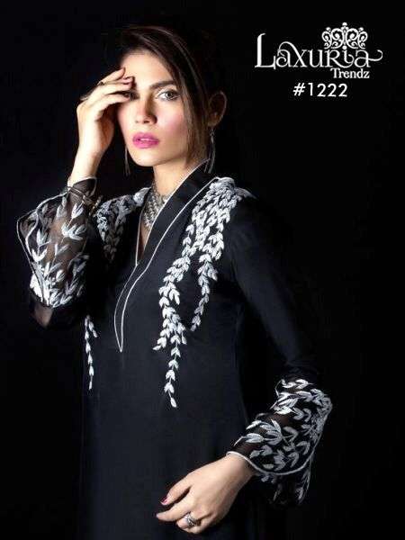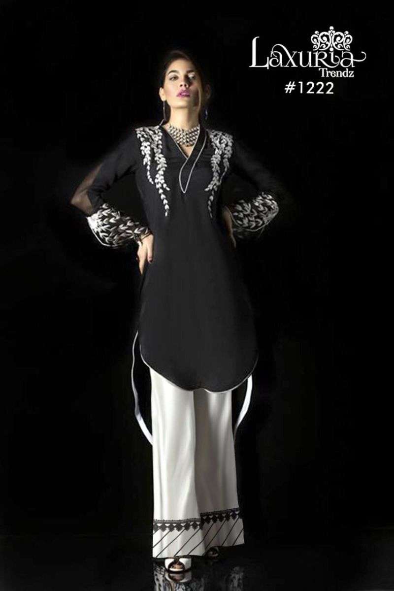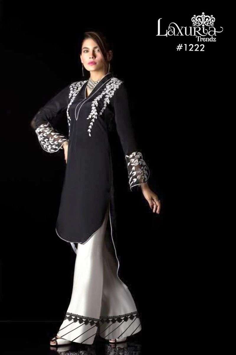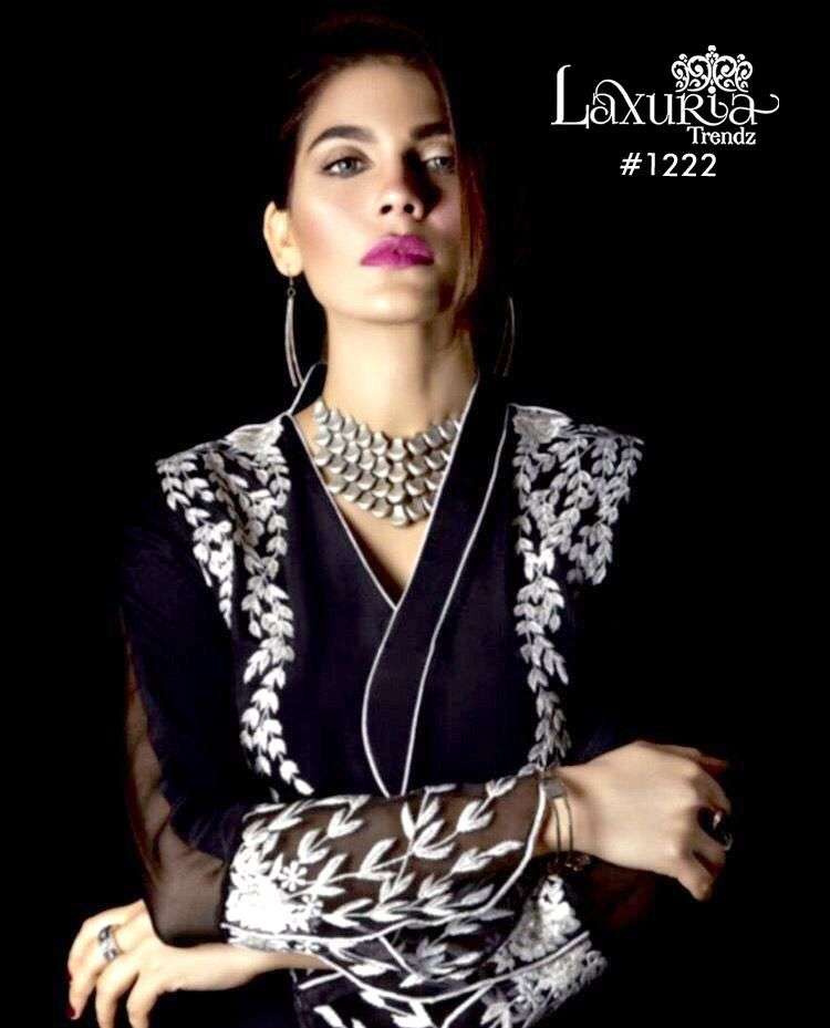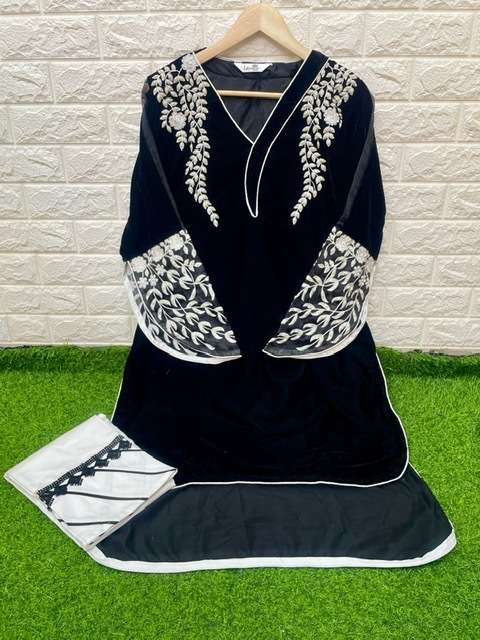 LUXURIA TRENZ 1222 SERIES DESIGNER WITH WORK VELVET PAKISTANI STYLE KURTI WITH BOTTOM ARE AVAILABLE AT WHOLESALE PRICE