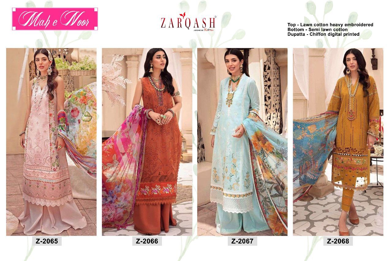Maah E Noor By Zarqash Designer With Embroidery Work Pakistani Style Lawn Cotton Suits Are Available At Wholesale Price