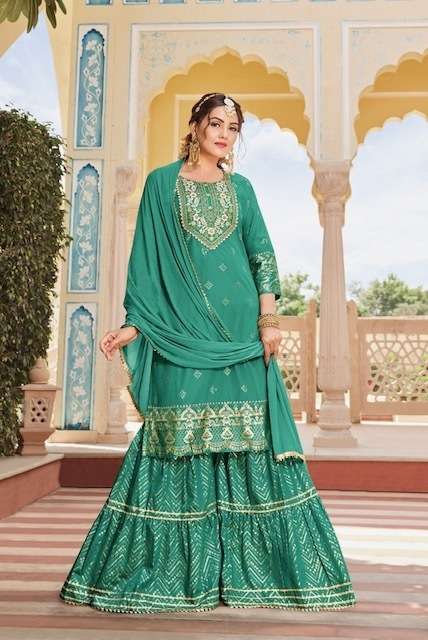 MAAN VOL-2 KURTI BY KAJAL STYLE DESIGNER WITH WORK CHANDERI KURTI WITH BOTTOM AND DUPATTA ARE AVAILABLE AT WHOLESALE PRICE