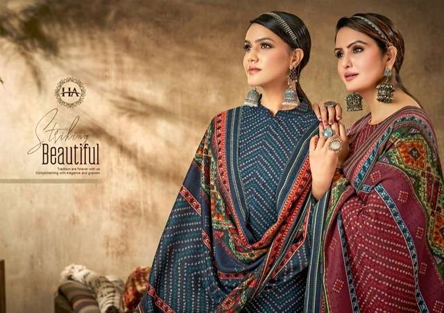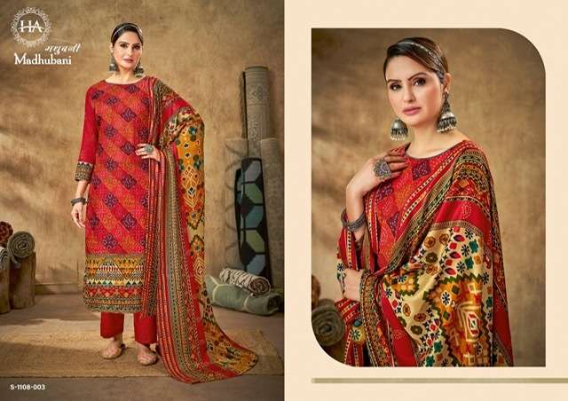 MADHUBANI BY HARSHIT FASHION DESIGNER WITH PRINTED AND WORK WOOL PASHMINA SUITS ARE AVAILABLE AT WHOLESALE PRICE