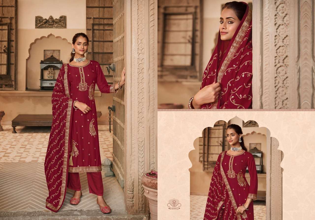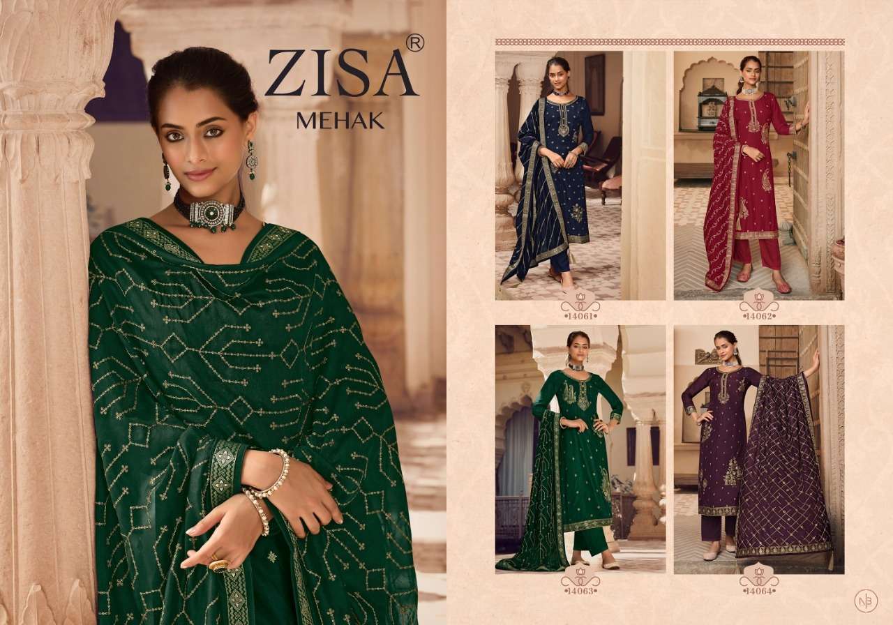MAHEK BY ZISA DESIGNER WITH WORK STRAIGHT DOLA JACQUARD SUITS ARE AVAILABLE AT WHOLESALE PRICE