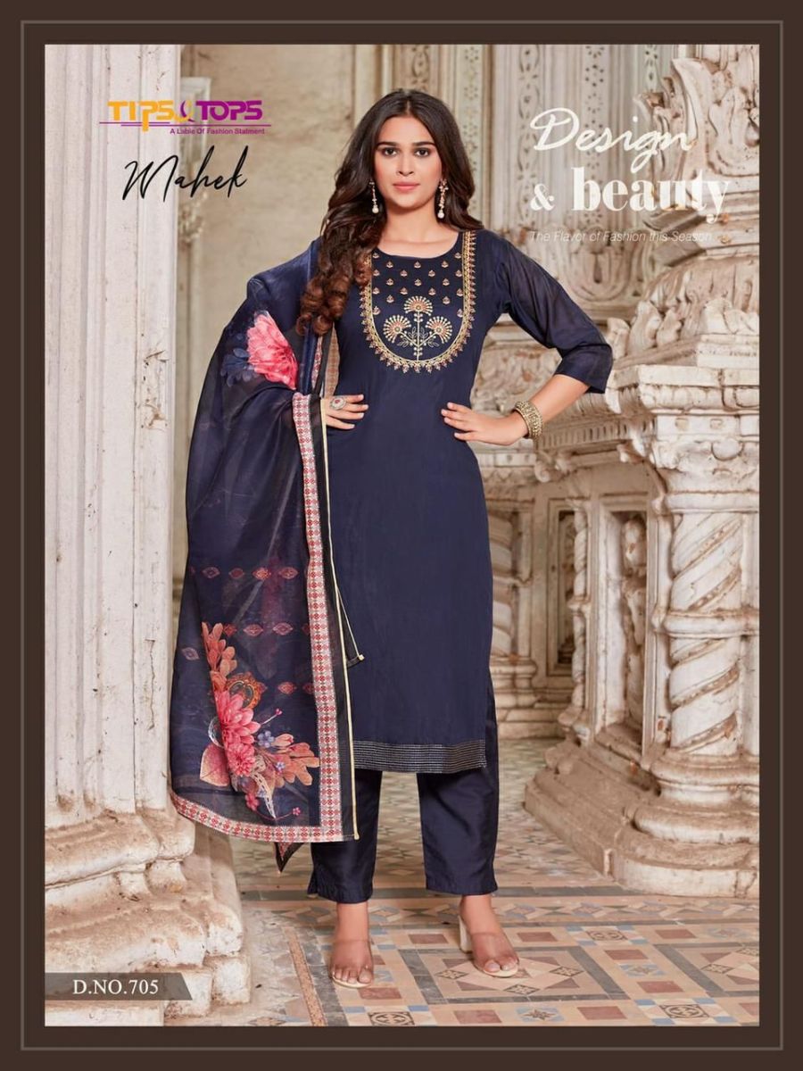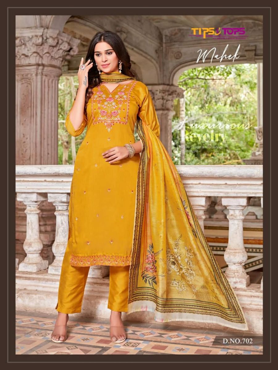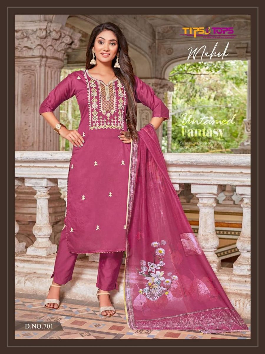 Mahek Vol-7 Kurti By Tips & Tops Designer With Work Chanderi Silk Kurti With Pant And Dupatta Are Available At Wholesale Price
