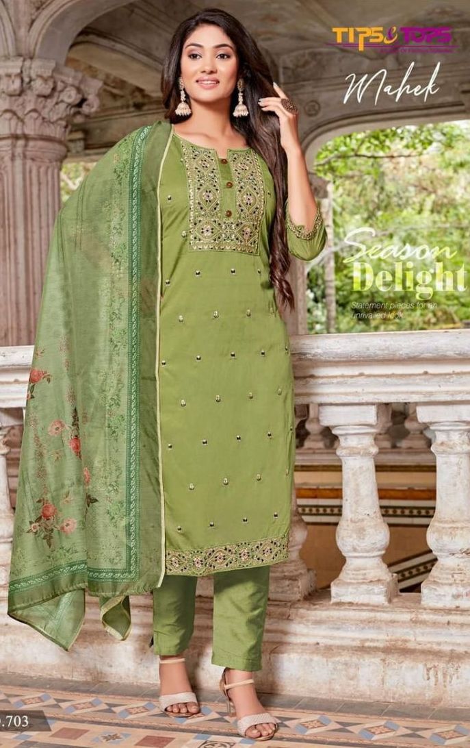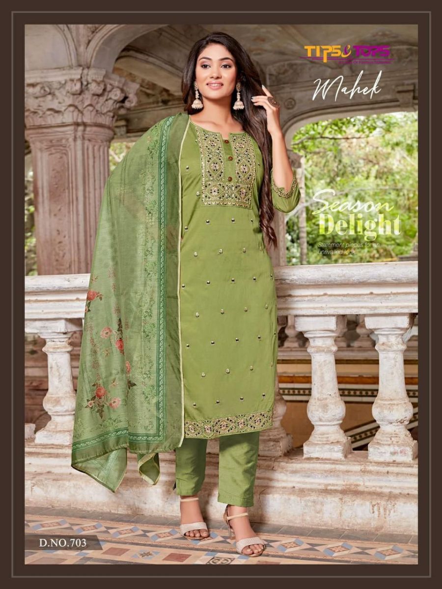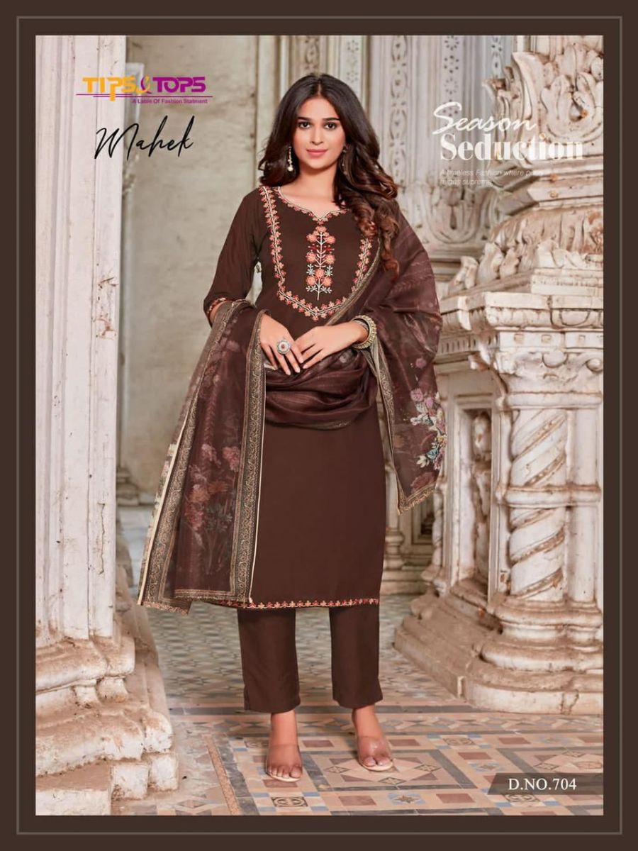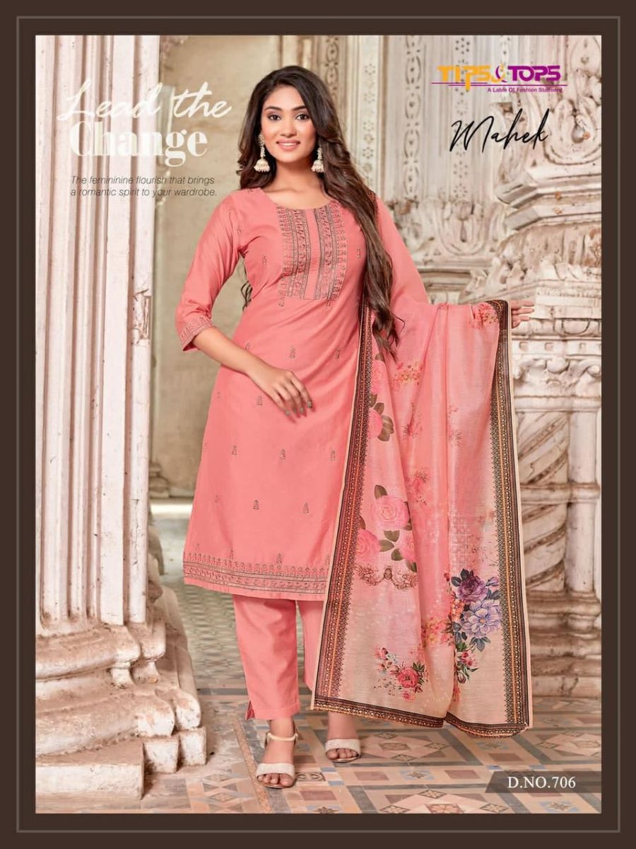 Mahek Vol-7 Kurti By Tips & Tops Designer With Work Chanderi Silk Kurti With Pant And Dupatta Are Available At Wholesale Price