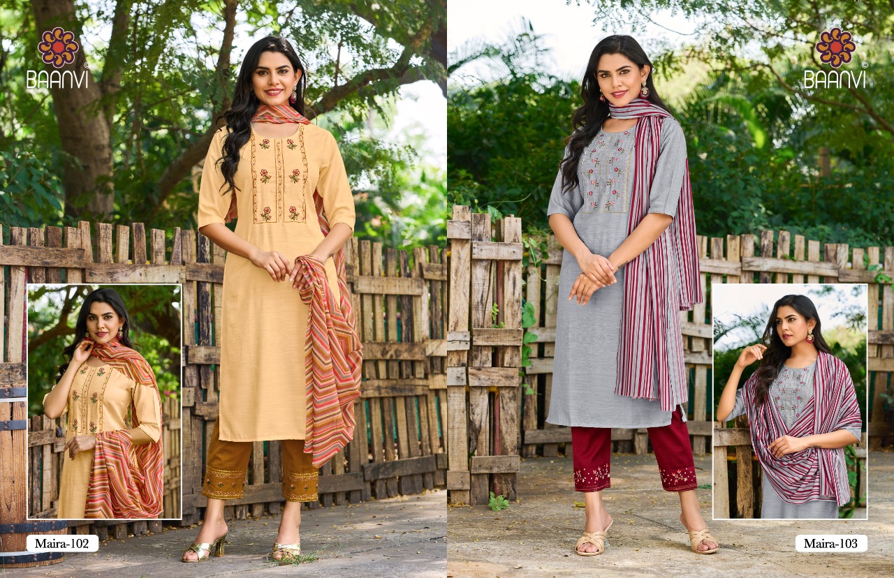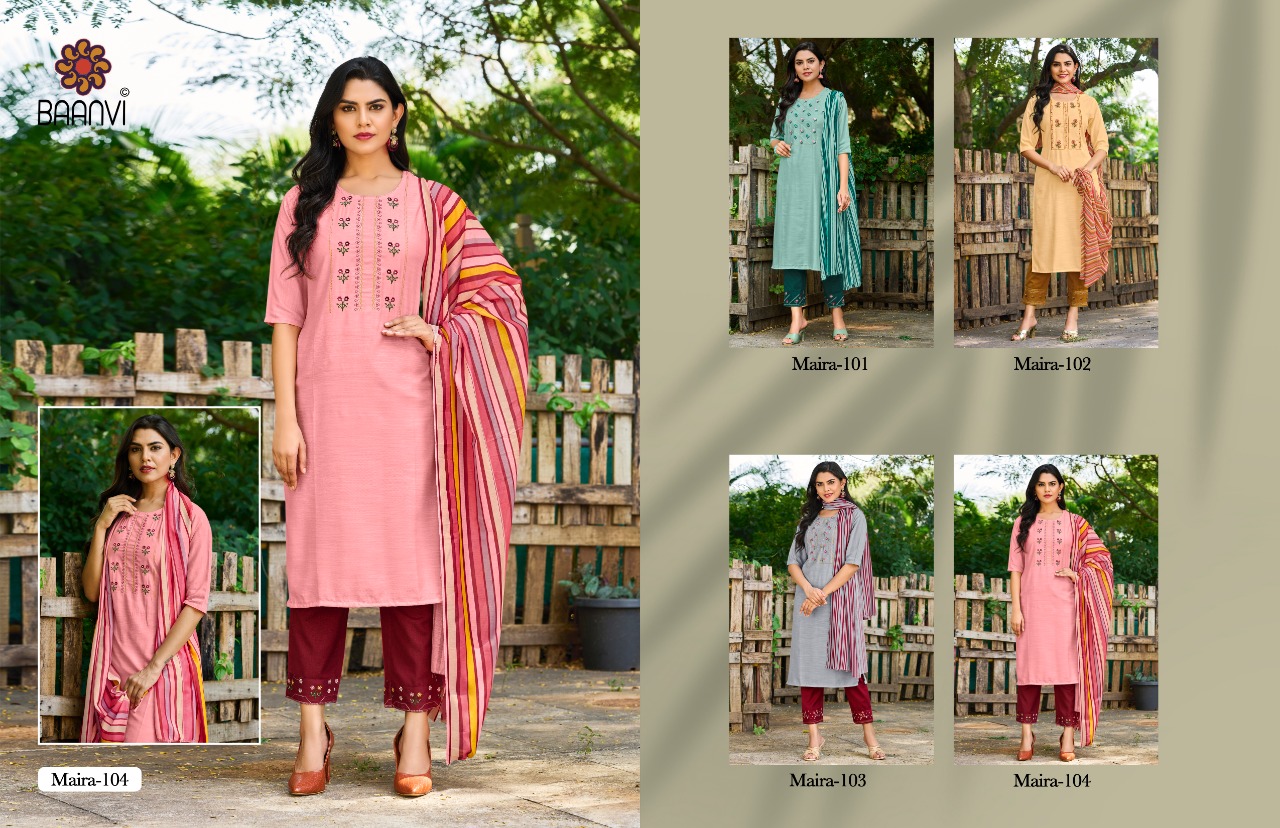 Maira Kurti By Mitto Designer With Printed And Work Kurti With Bottom And Dupatta Are Available At Wholesale Price
