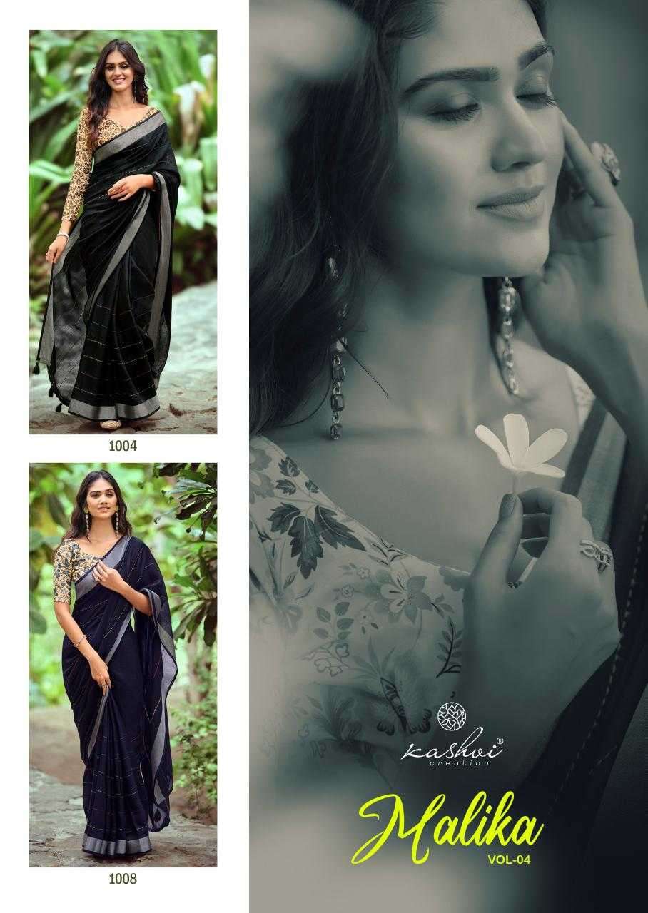 | Name: | kashvi-MALIKA VOL-4 SERIES 1001 TO 1008 SAREE BY KASHVI |