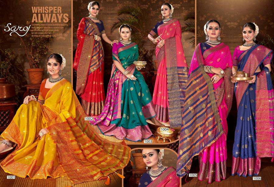 | Name: | saroj-MANGALAM SAROSKI VOL-3 SERIES 1001 TO 1006 SAREE BY SAROJ |