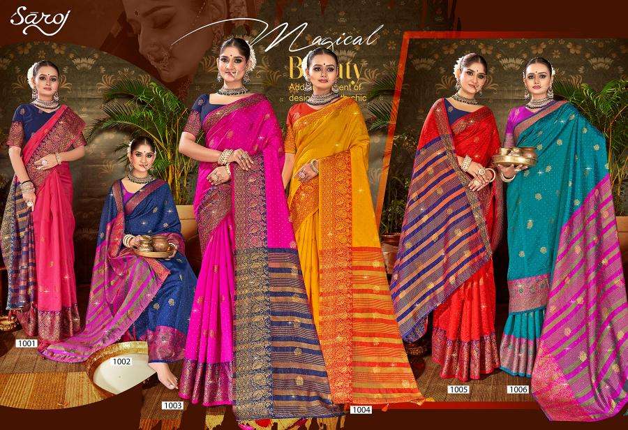 | Name: | saroj-MANGALAM SAROSKI VOL-4 SERIES 1001 TO 1006 SAREE BY SAROJ |