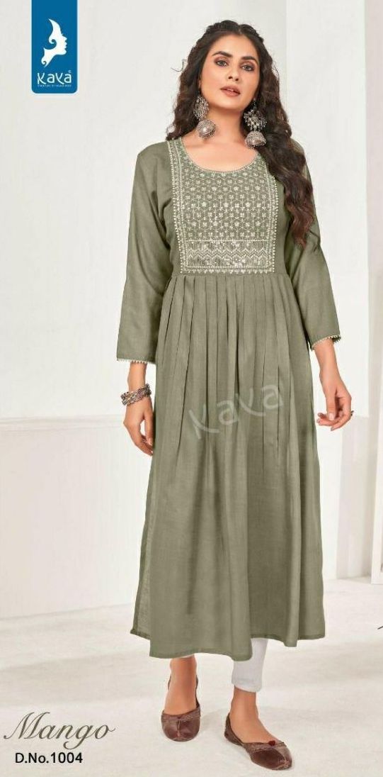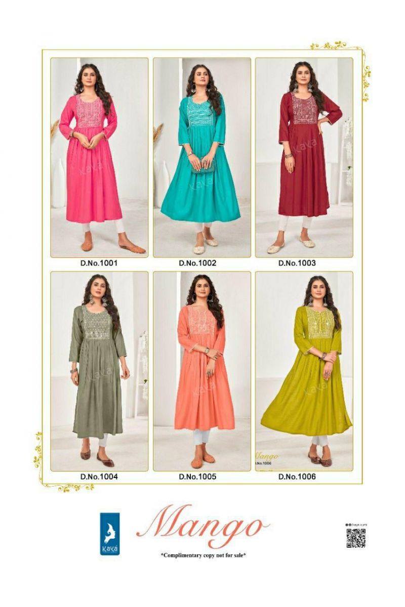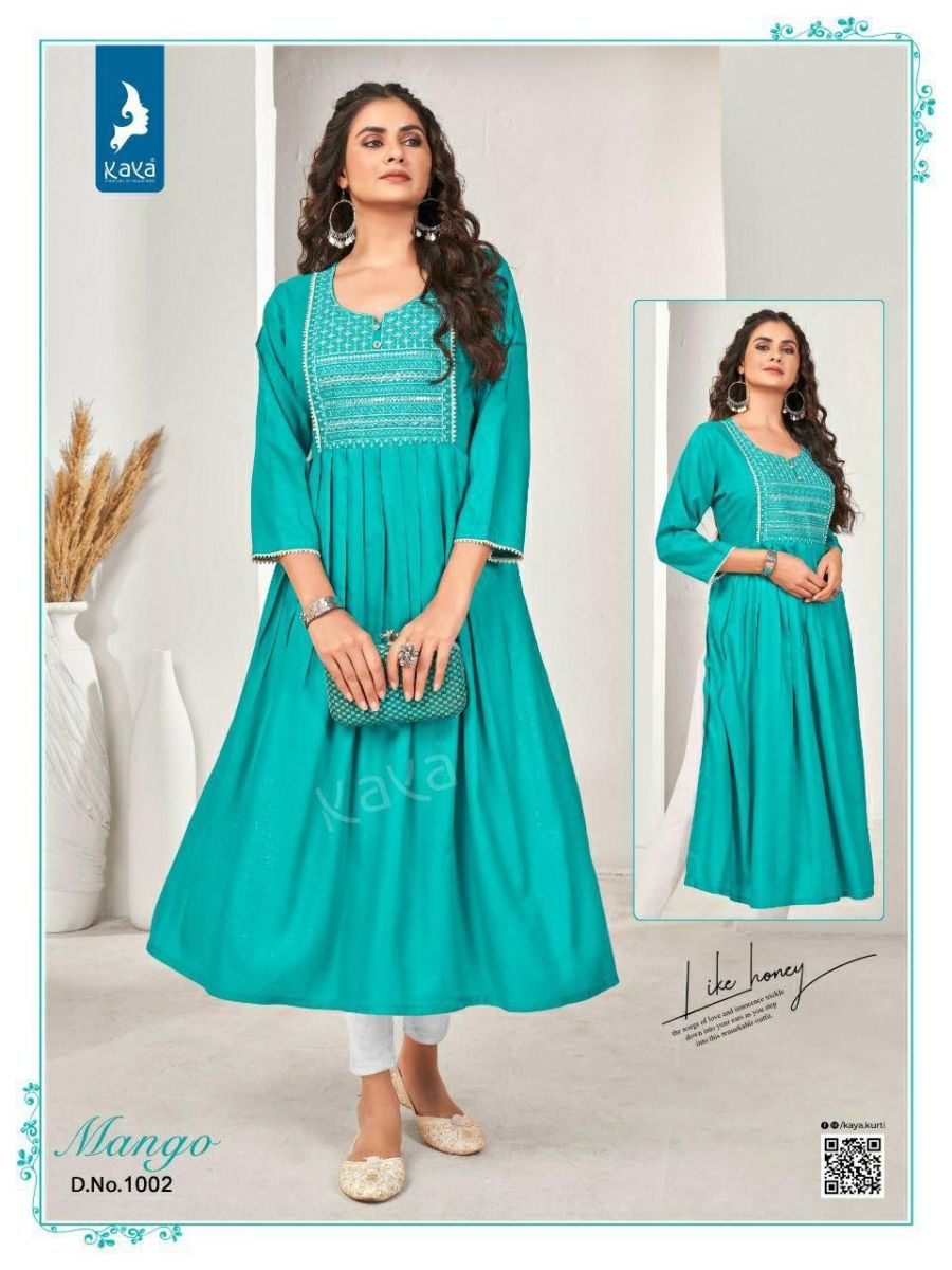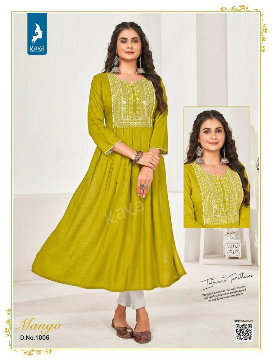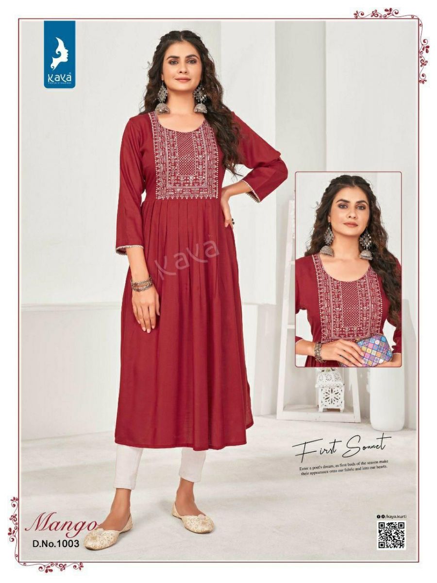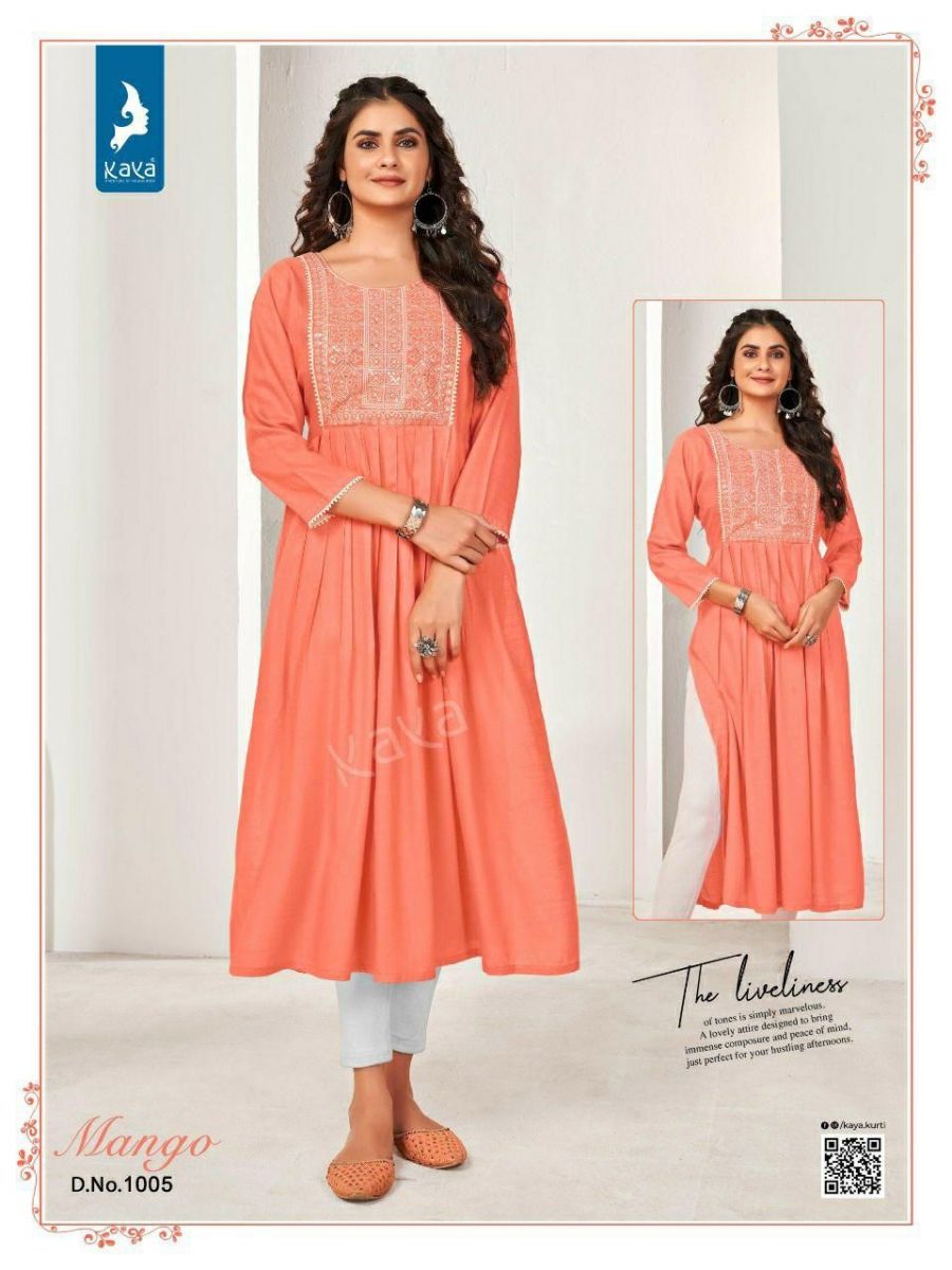 Mango Kurti By Kaya Designer With Work And With Falir Rayon Kurtis Are Available At Wholesale Price