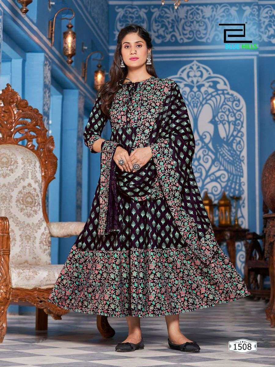 MANIKA MAGE HITHE VOL-15 GOWN BY BLUE HILLS DESIGNER WITH FOIL PRINTED RAYON GOWNS ARE AVAILABLE AT WHOLESALE PRICE