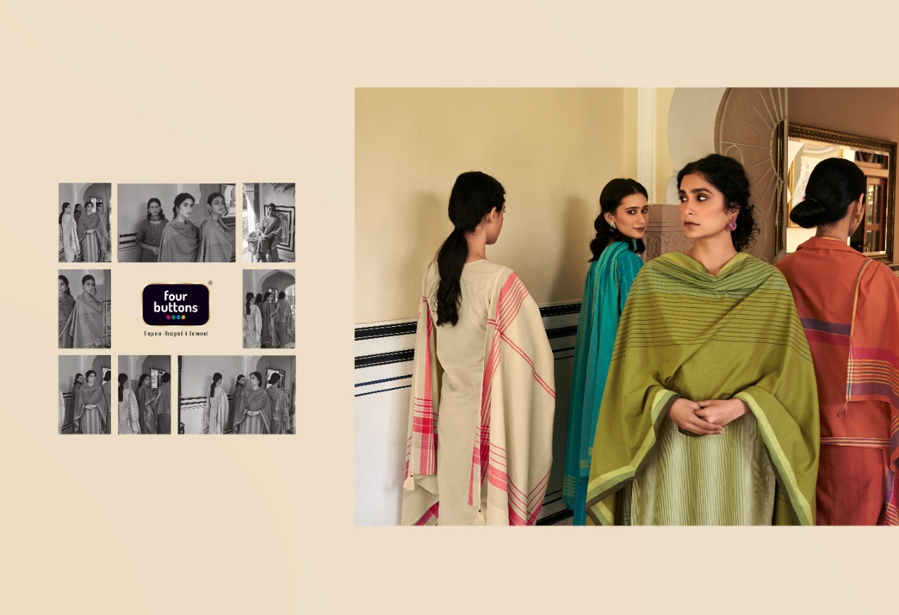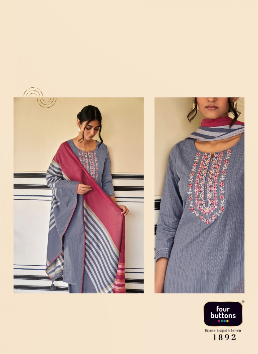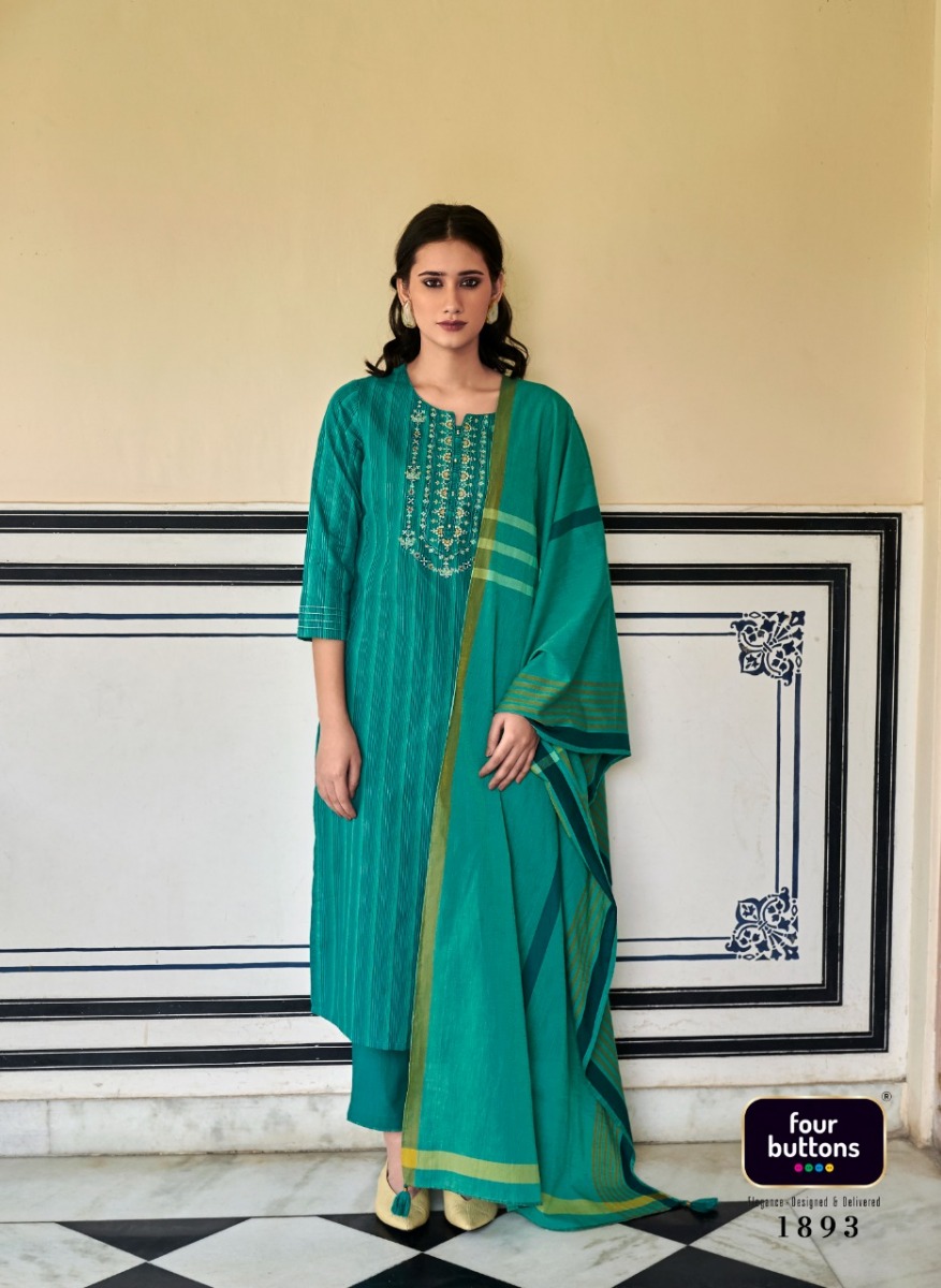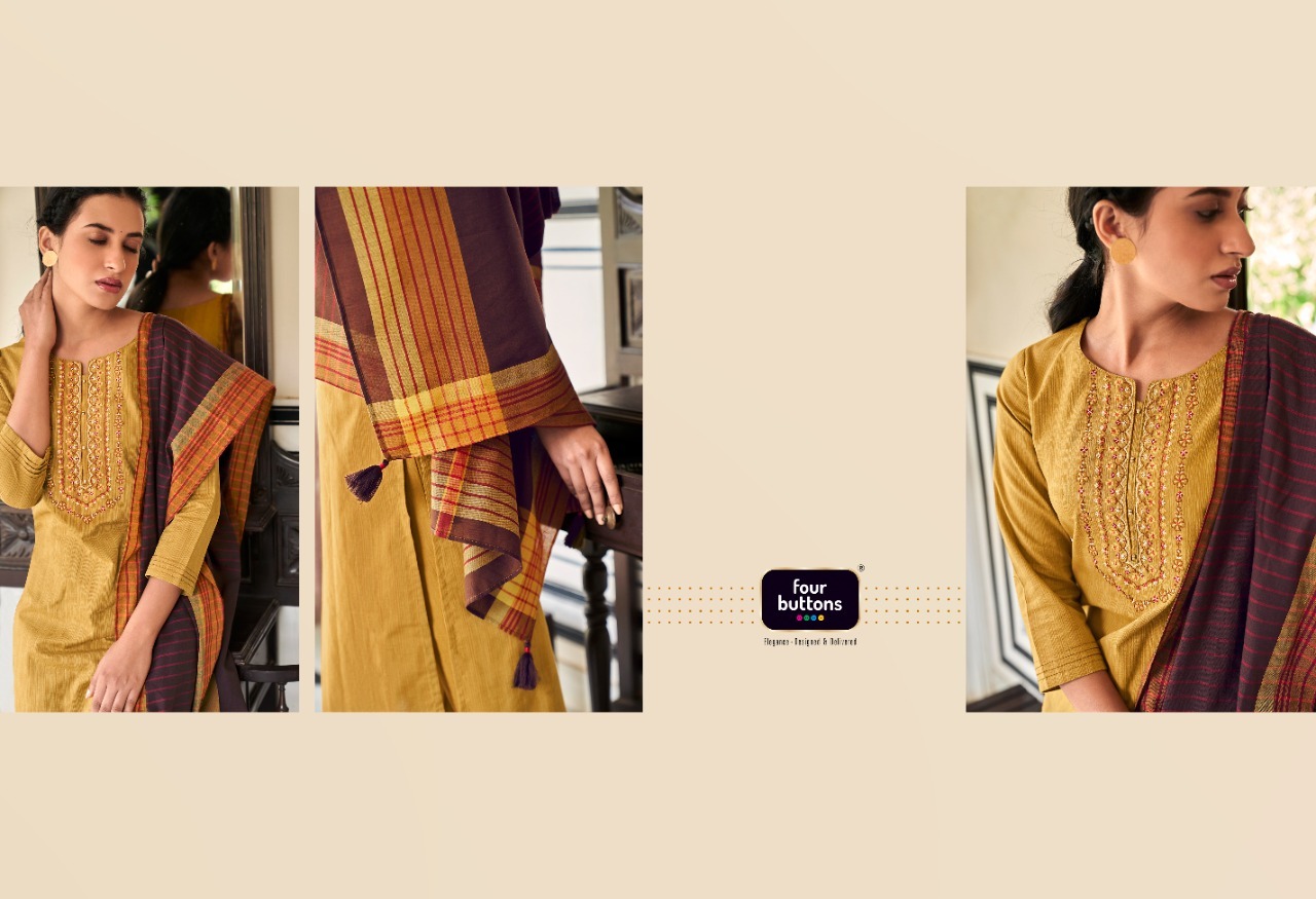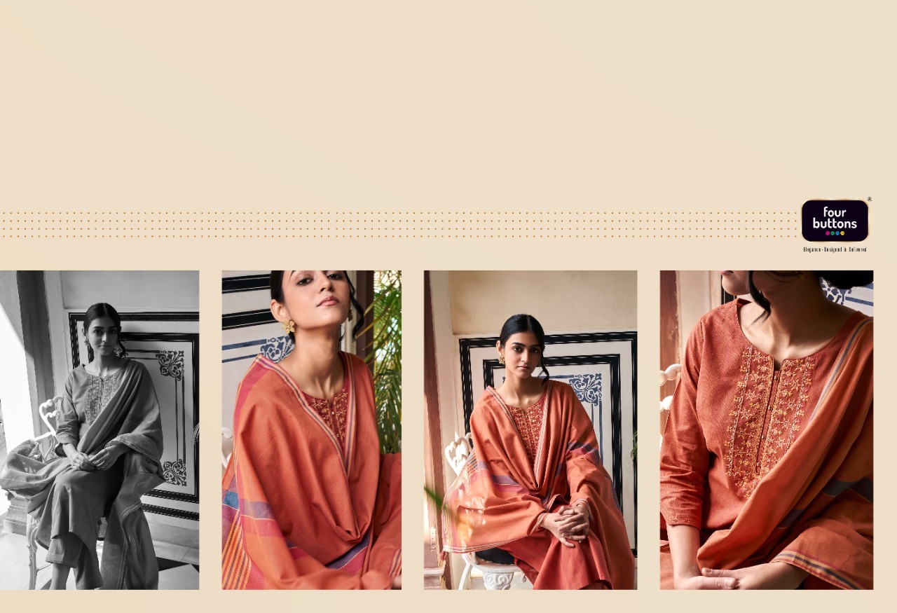 Mantra Kurti By Four Buttons Designer With Work Cotton Kurti With Bottom And Dupatta Are Available At Wholesale Price