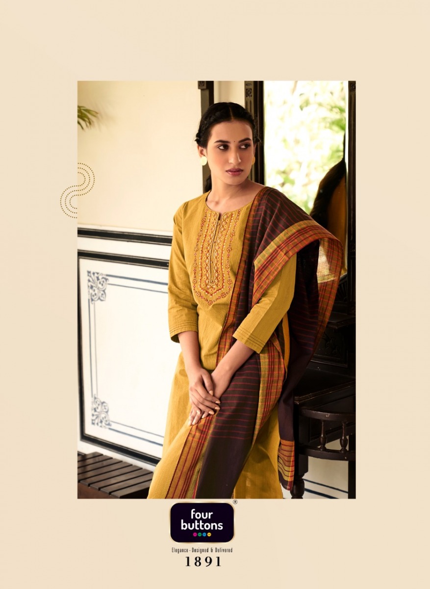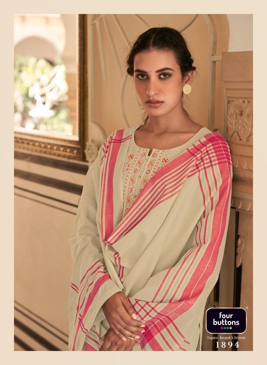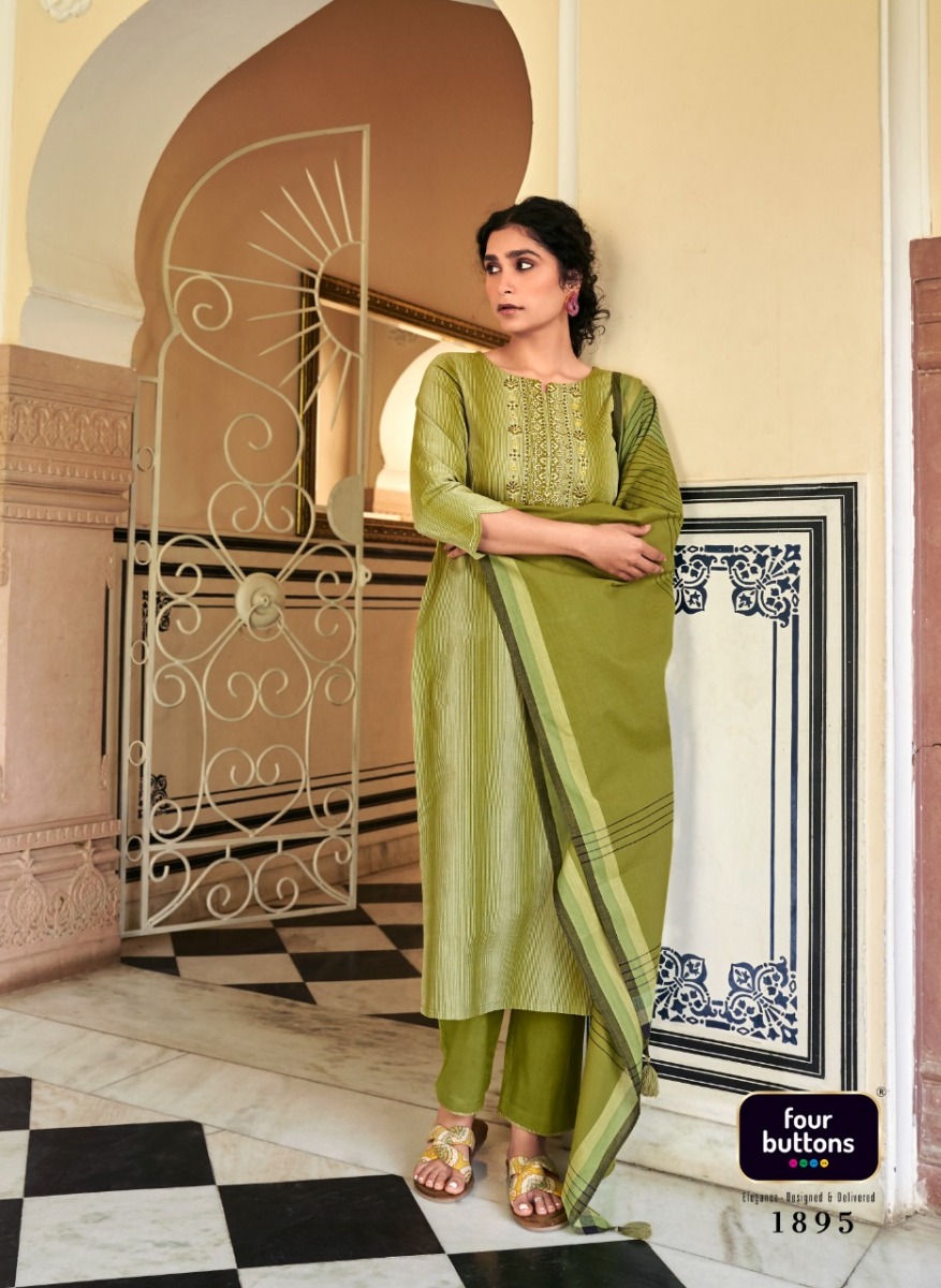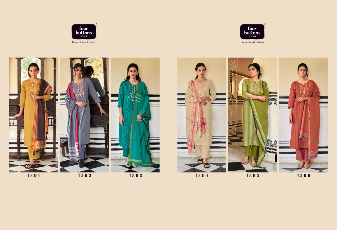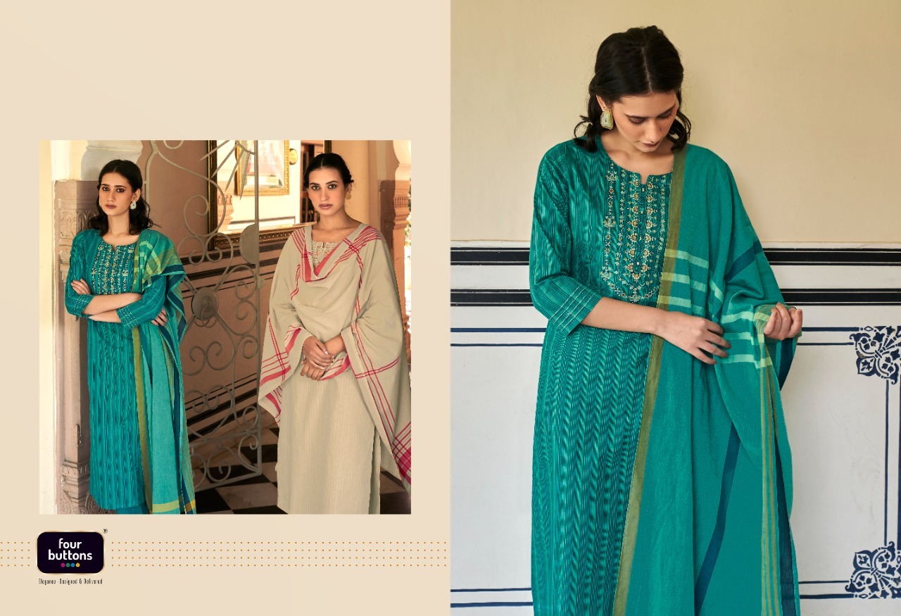 Mantra Kurti By Four Buttons Designer With Work Cotton Kurti With Bottom And Dupatta Are Available At Wholesale Price