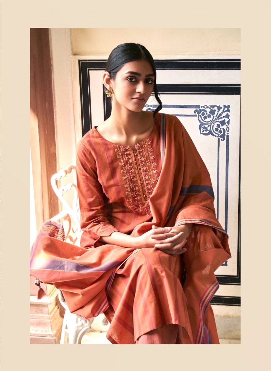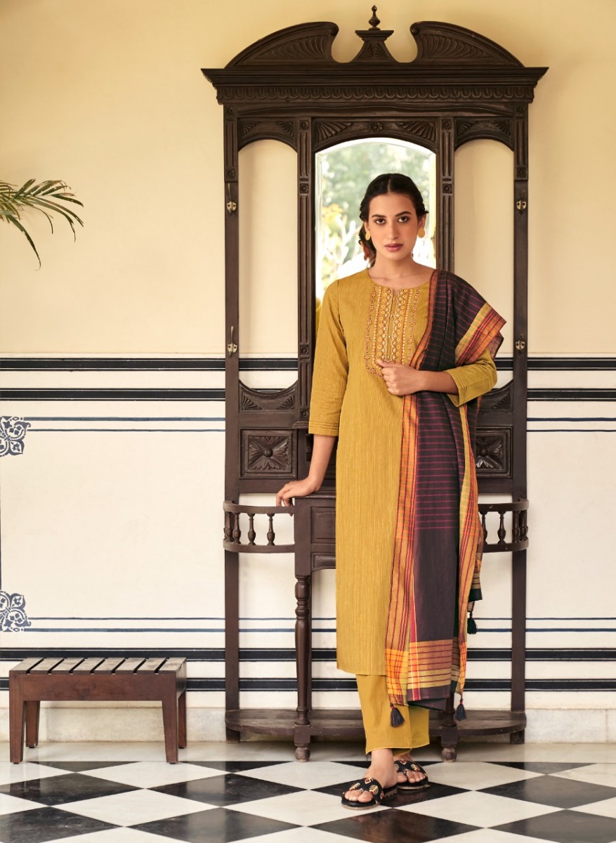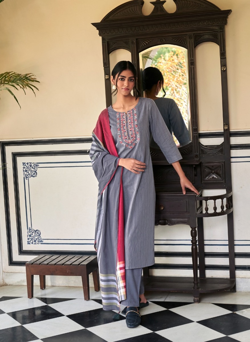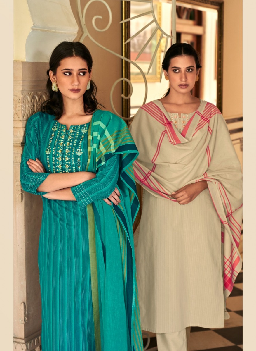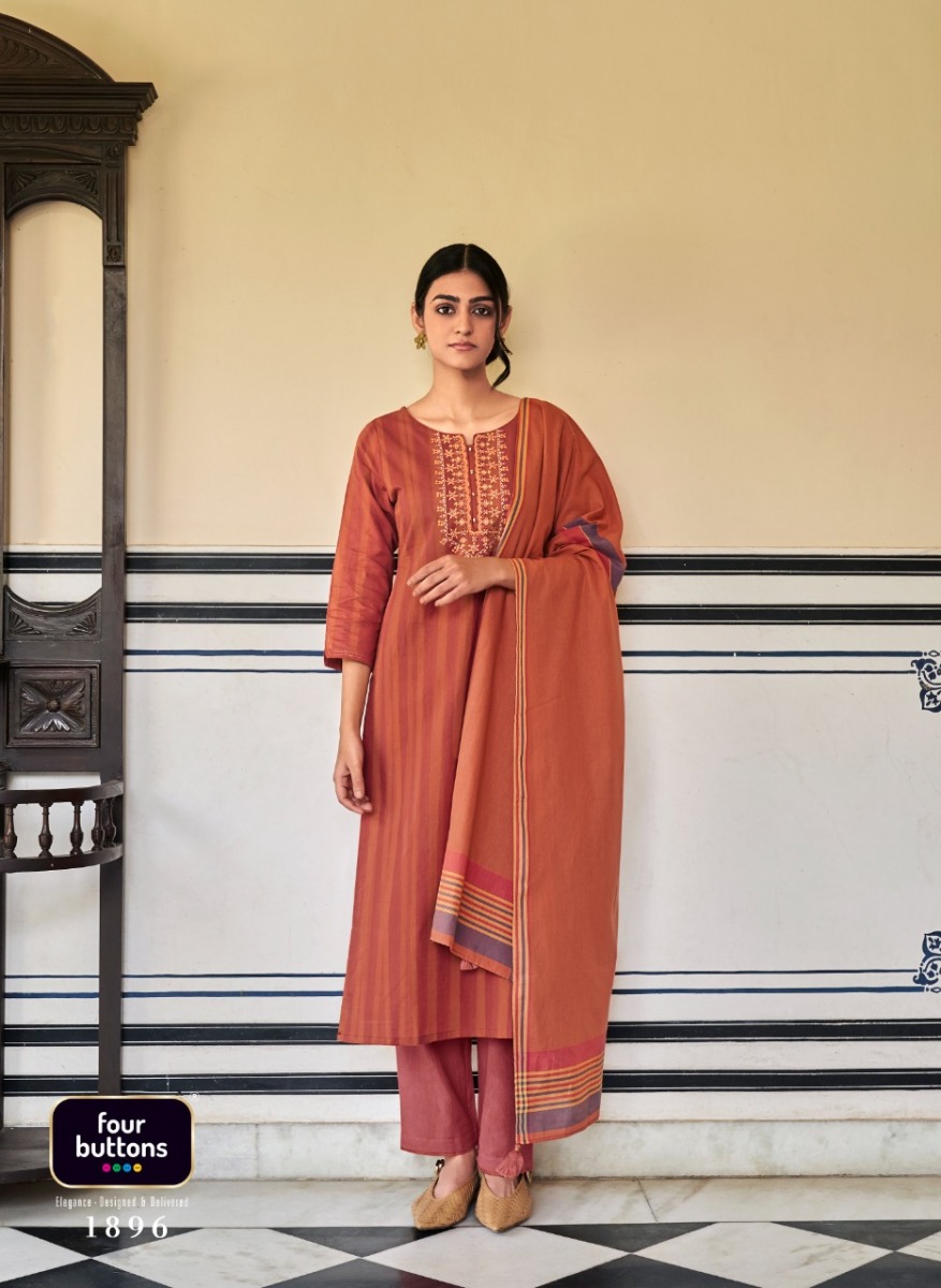 Mantra Kurti By Four Buttons Designer With Work Cotton Kurti With Bottom And Dupatta Are Available At Wholesale Price