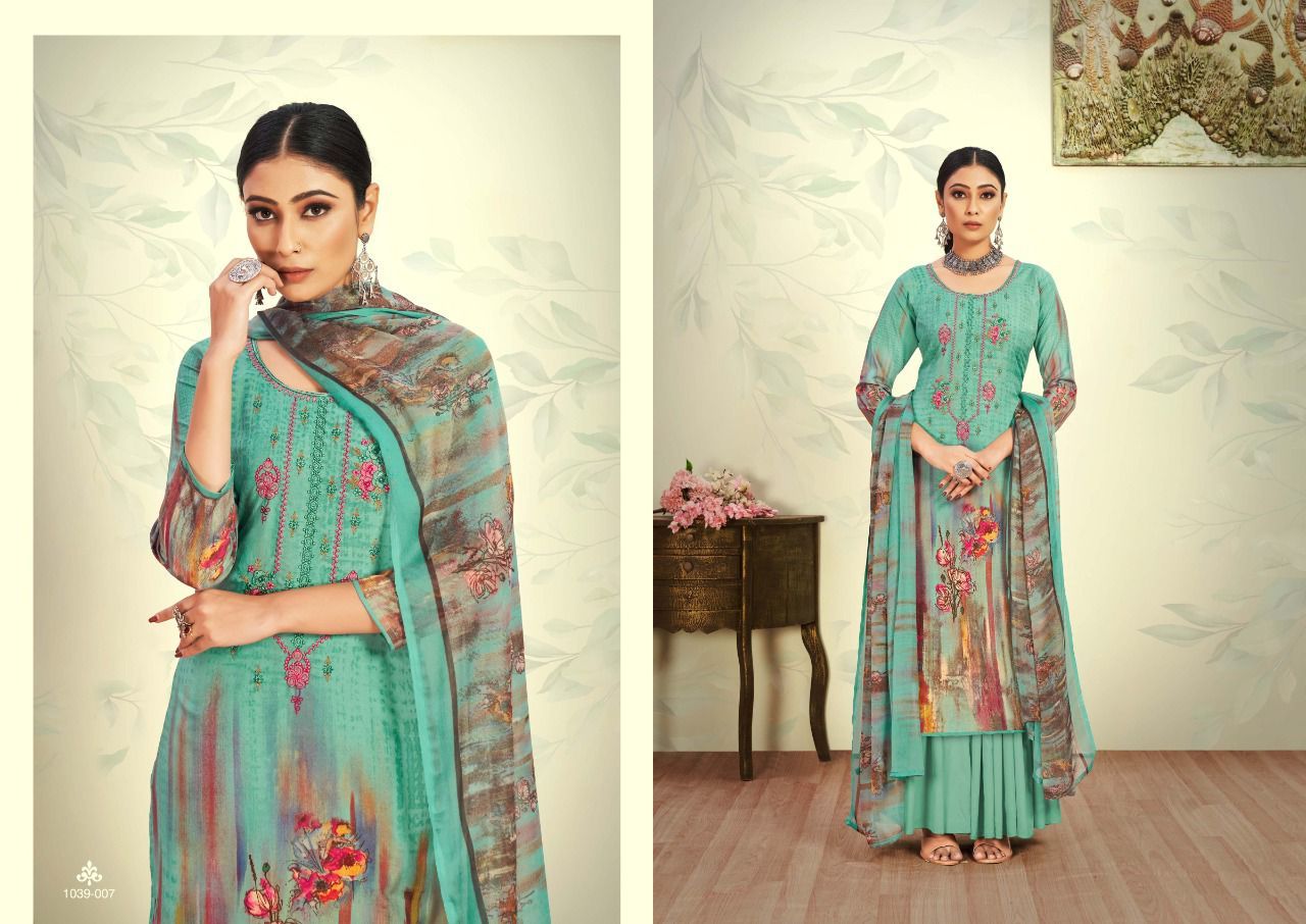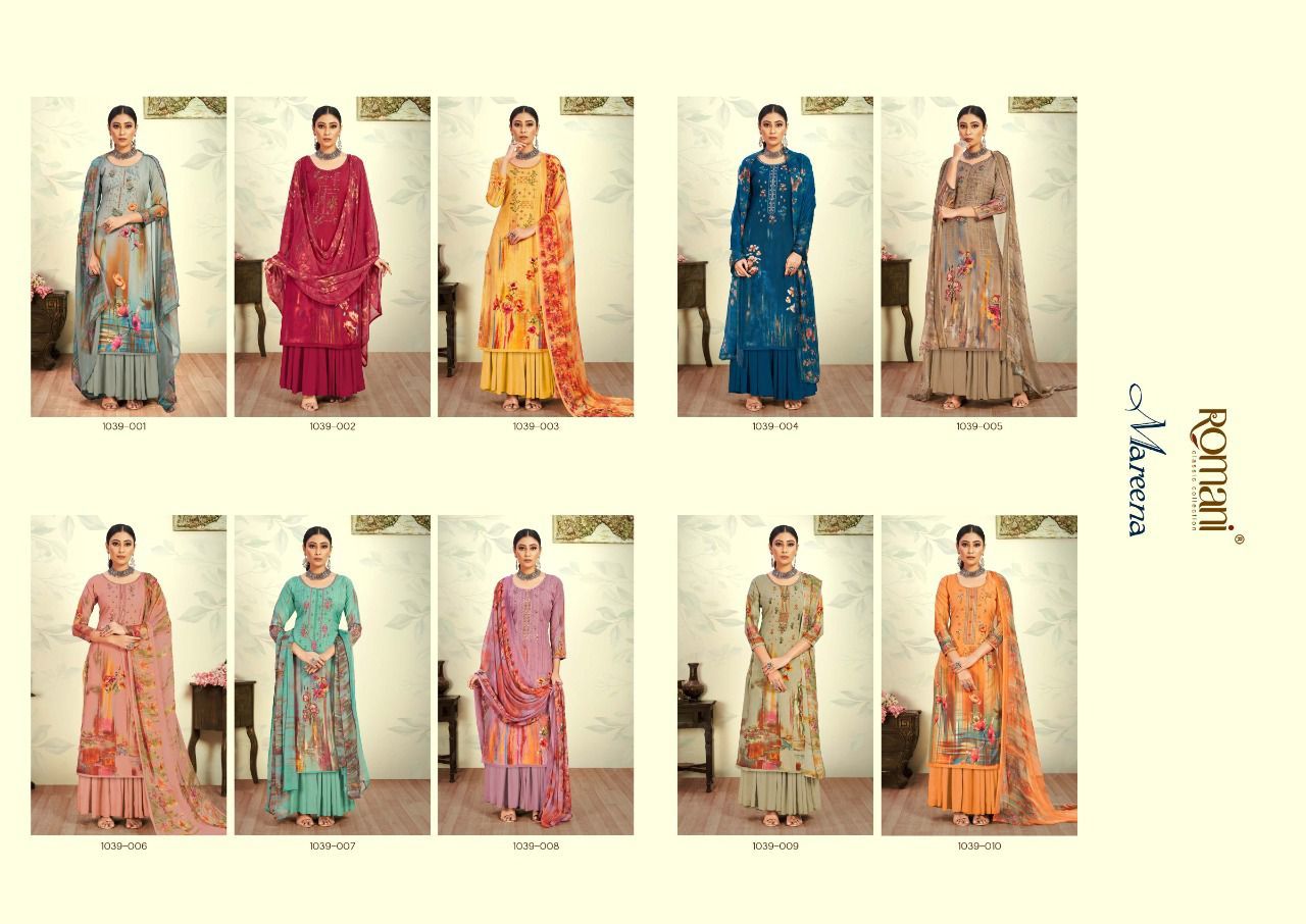 Mareena By Romani Designer With Work And Digital Printed Cotton Suits Are Available At Wholesale Price
