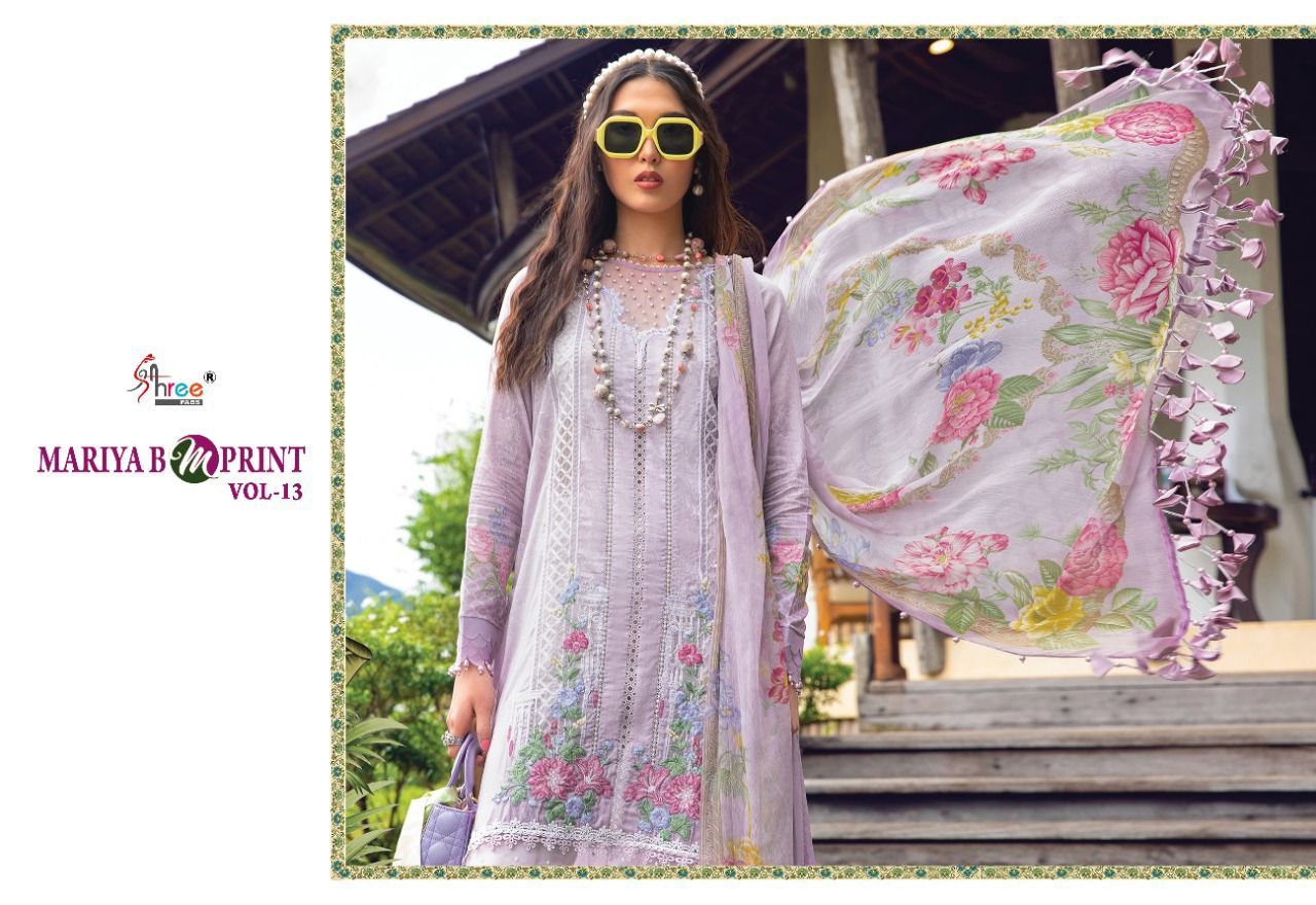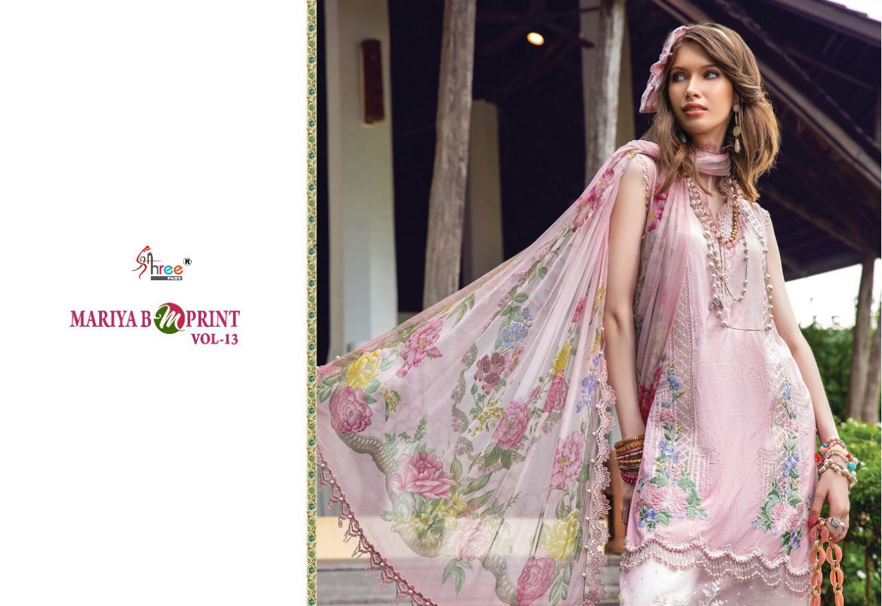 Maria B M Print Vol-13 By Shree Fab Designer With Work Pakistani Style Cotton Suits Are Available At Wholesale Price