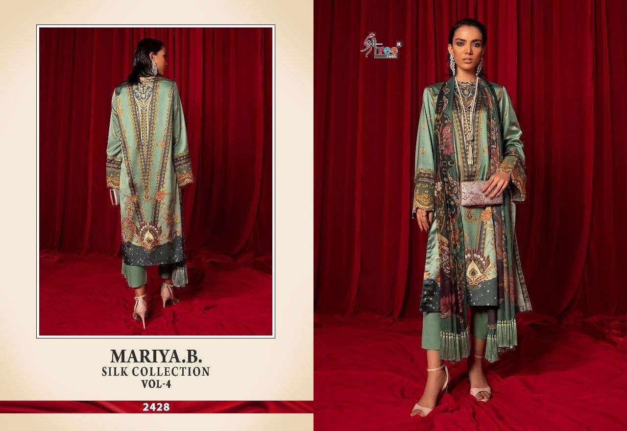 MARIA B SILK COLLECTION VOL-4 BY SHREE FAB DESIGNER WITH PRINTED PAKISTANI STYLE SATIN SILK SUITS ARE AVAILABLE AT WHOLESALE PRICE