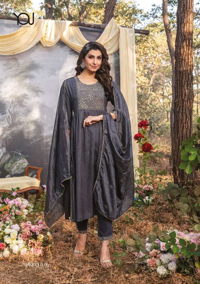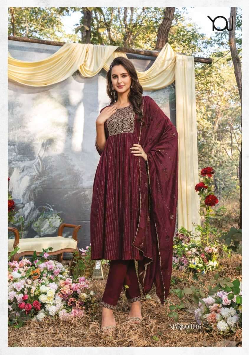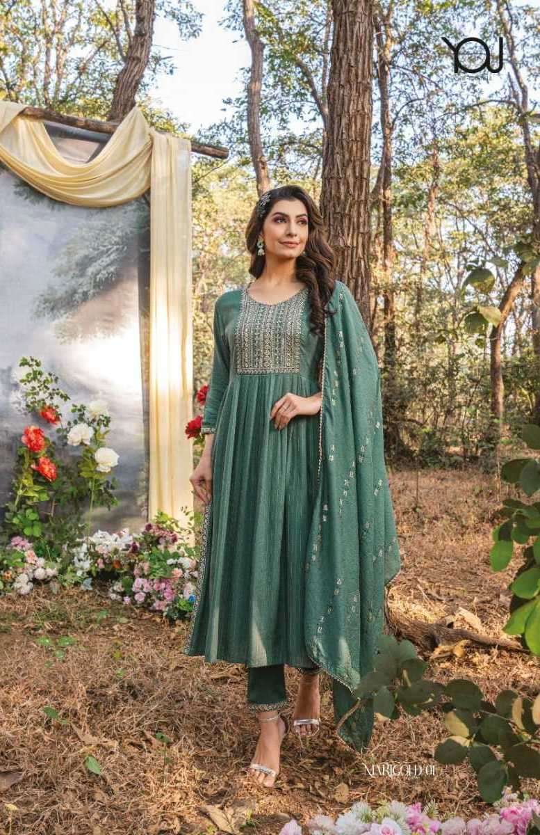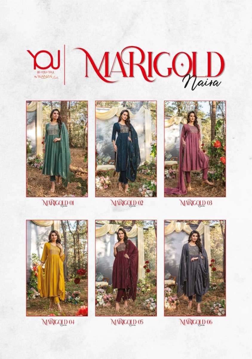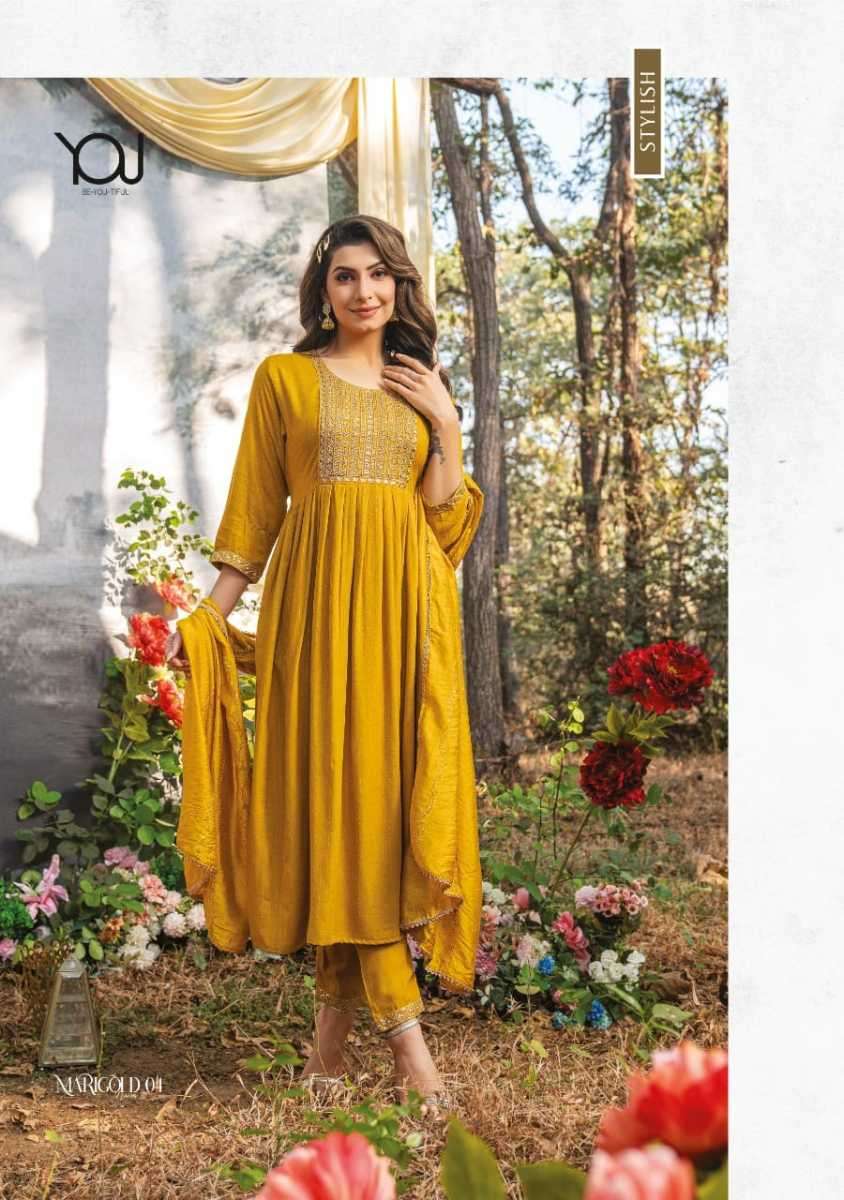 MARIGOLD MAIRA KURTI BY WANNA DESIGNER WITH WORK VISCOSE KURTI WITH PANT AND DUPATTA ARE AVAILABLE AT WHOLESALE PRICE