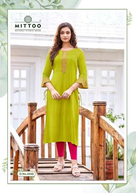 MAYURIKA VOL-8 KURTI BY MITTO DESIGNER WITH HAND WORK RAYON KURTIS ARE AVAILABLE AT WHOLESALE PRICE