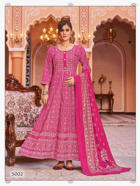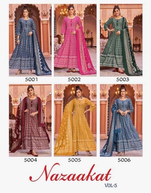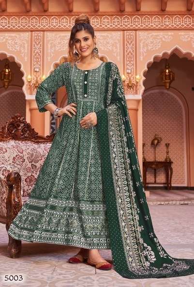 MAZAAKAT VOL-5 GOWN BY BANWERY DESIGNER WITH FOIL PRINTED RAYON GOWN WITH DUPATTA ARE AVAILABLE AT WHOLESALE PRICE