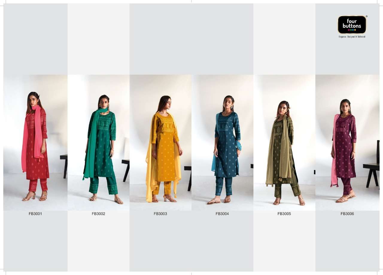 MEHER VOL-2 KURTI BY FOUR BUTTONS DESIGNER WITH WORK CHANDERI SILK KURTI WITH PANT AND DUPATTA ARE AVAILABLE AT WHOLESALE PRICE